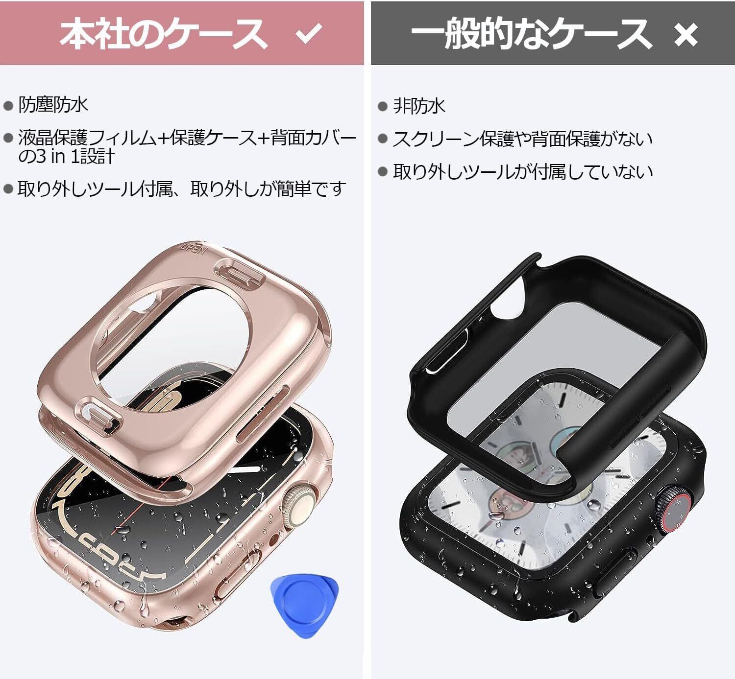 【液晶保護フィルム+保護ケース+背面保護ケースの3 in 1設計】本製品は、Apple Watchの画面、エッジ、ボタンから背面まで360度保護する、Apple Watchケース/フィルム一体型の保護ケース+背面保護ケースの3つの合体設計です。24H硬度の強化ガラスフィルムは、キズに強く耐久性があり、高解像度で高透過率、タッチもスムーズです。PC素材の保護ケースは、落下やキズなどからあなたのApple Watchを保護し、新品の状態を長持ちさせます。