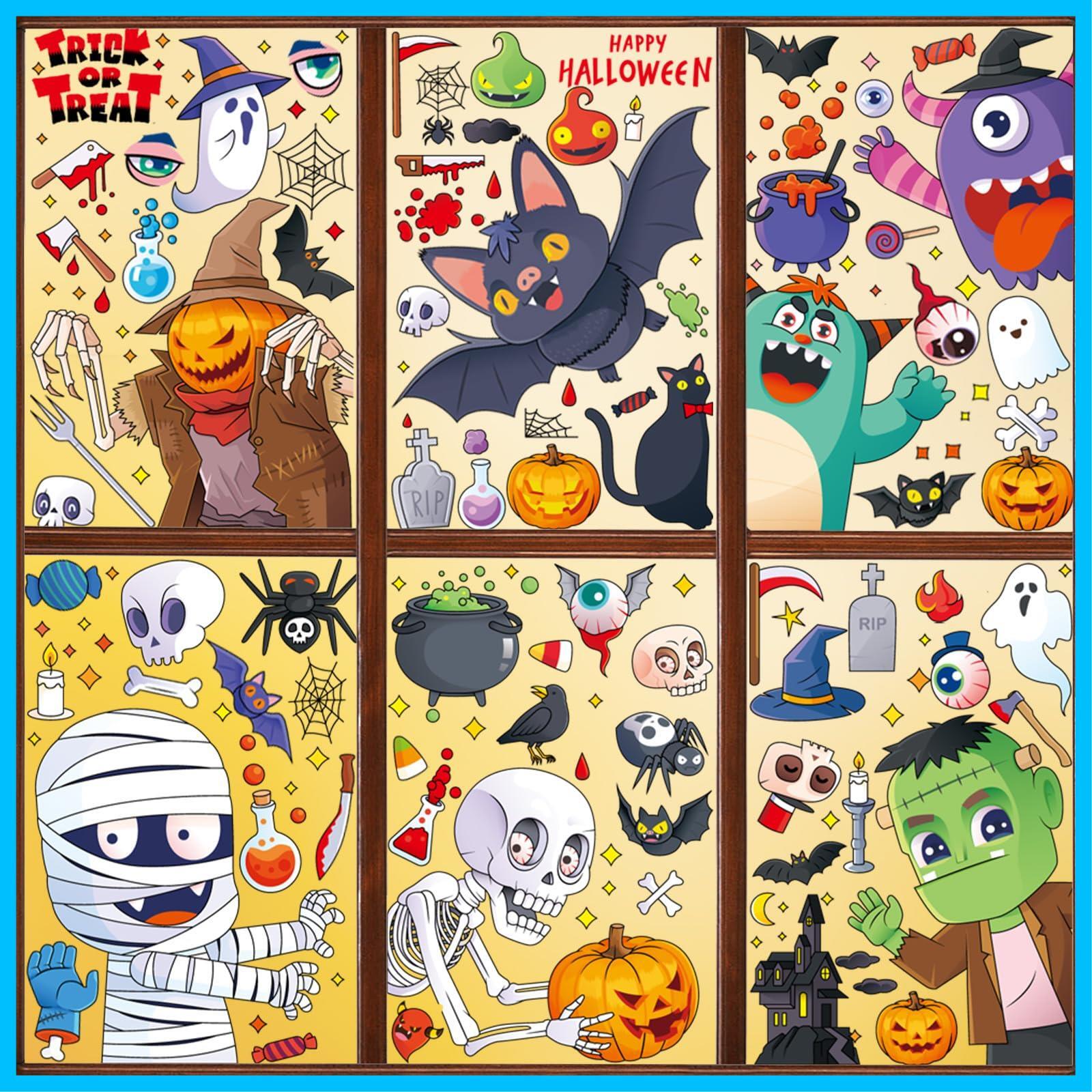 【 ハロウィン ステッカー のデザイン】カボチャ、コウモリ、モンスター、妖怪、幽霊、骸骨など、様々なハロウィンアイテムを利用して、かわいい絵柄にデザインされました。漫画のスタイルと鮮やかなカラーで、ハロウィンの雰囲気が溢れるとともに、不気味な気持ちがしません。子供がいる場合に活躍しているハロウィン 飾りです。