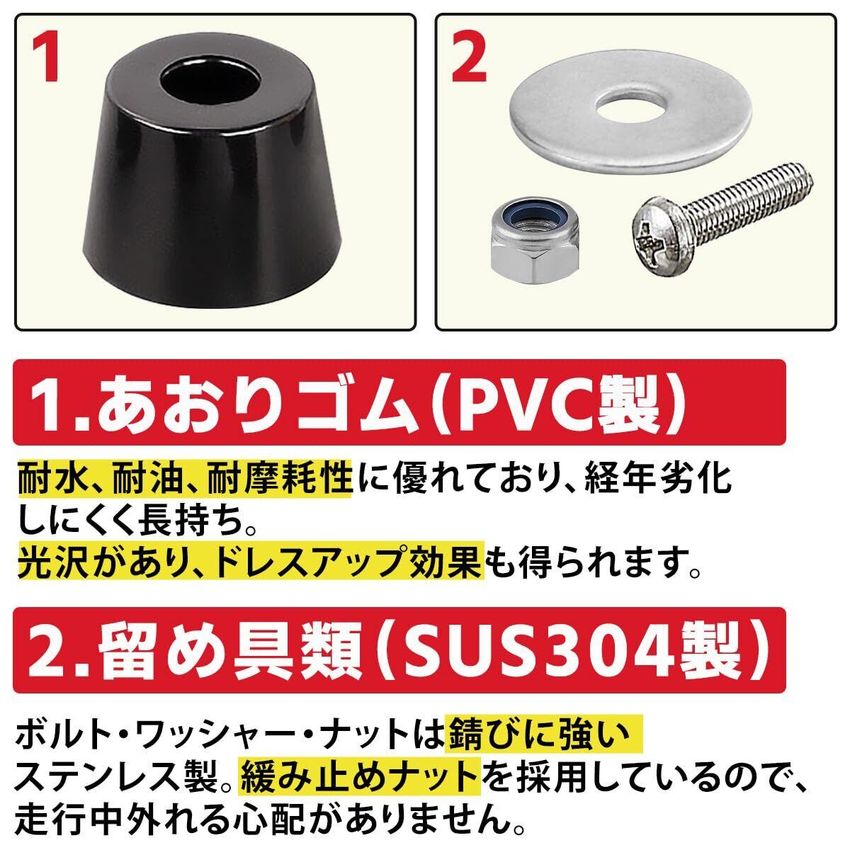 FJmark 軽トラ 軽トラック あおりゴム アオリゴム ガード ブラック 4個入り ボルト ワッシャー ナット セット (軽トラ用)