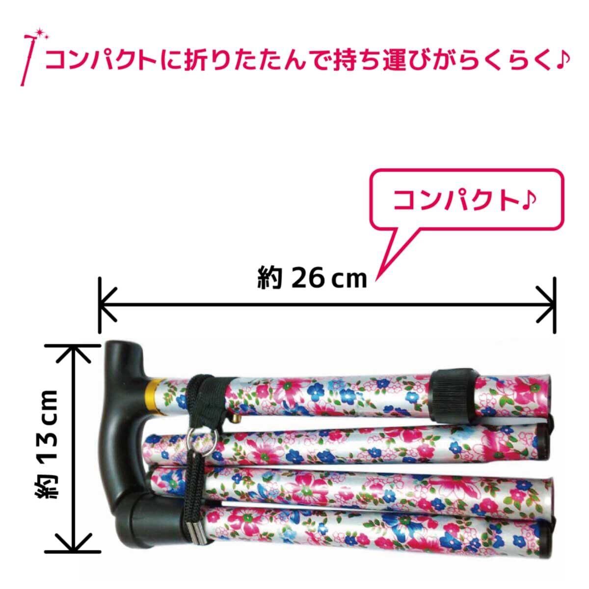 わずか228g!旅行やお出かけの携帯も楽々!花柄が可愛い軽量の折りたたみ杖です。