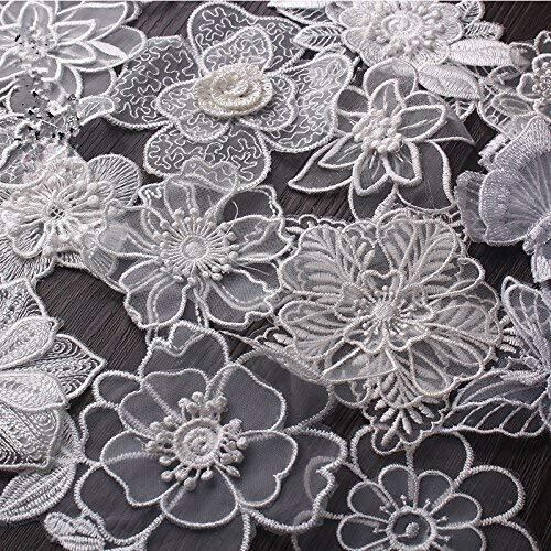 Sweetimes レース生地 刺繍花 縫製 DIY 服 工芸品の装飾 パッチ アップリケ モチーフ 10枚セット アイロン両面接着シート付No.16 (ホワイト10枚セット②) | グランメゾンショップ