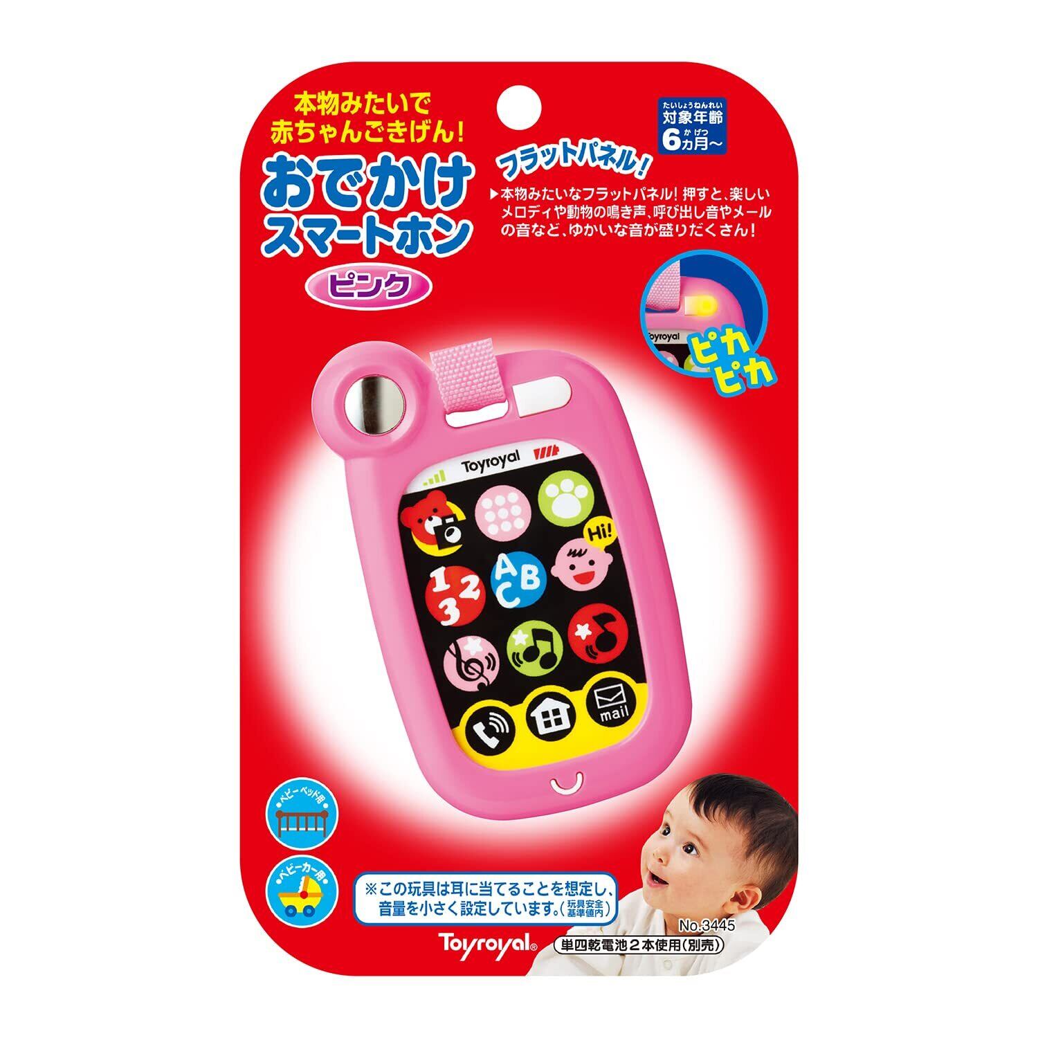トイローヤル おでかけスマートホン ( ピンク ) 赤ちゃん用スマホ ( 音の出るおもちゃ / 光るおもちゃ ) 持ち運び 知育玩具 男の子 女の子