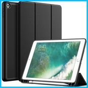 JETech iPad 9.7インチ ケース(第6/5世代、2018/2017モデル用)Pencilホルダー付き ペンシル ソフトTPUバック スリム保護カバー オートウェイクアップ/スリープ機能付き (ブラック)