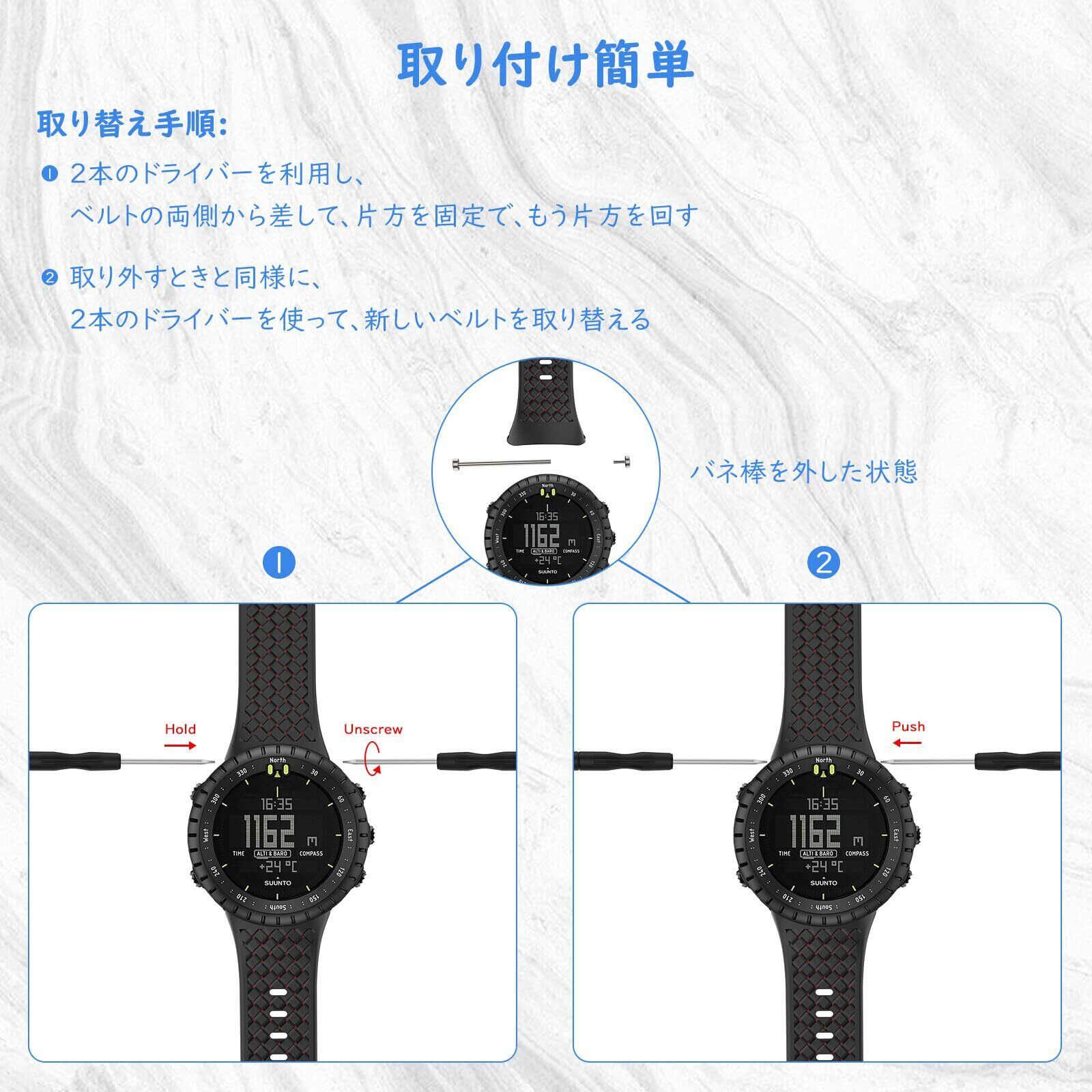 Suunto Core バンド ATiC スントコア専用替えベルト スントウォッチ交換用バンド シリコン製 ソフト 防水 通気性高い スポーツ向き 取り替え簡単 バネ棒&ドライバー付属 BlackRed