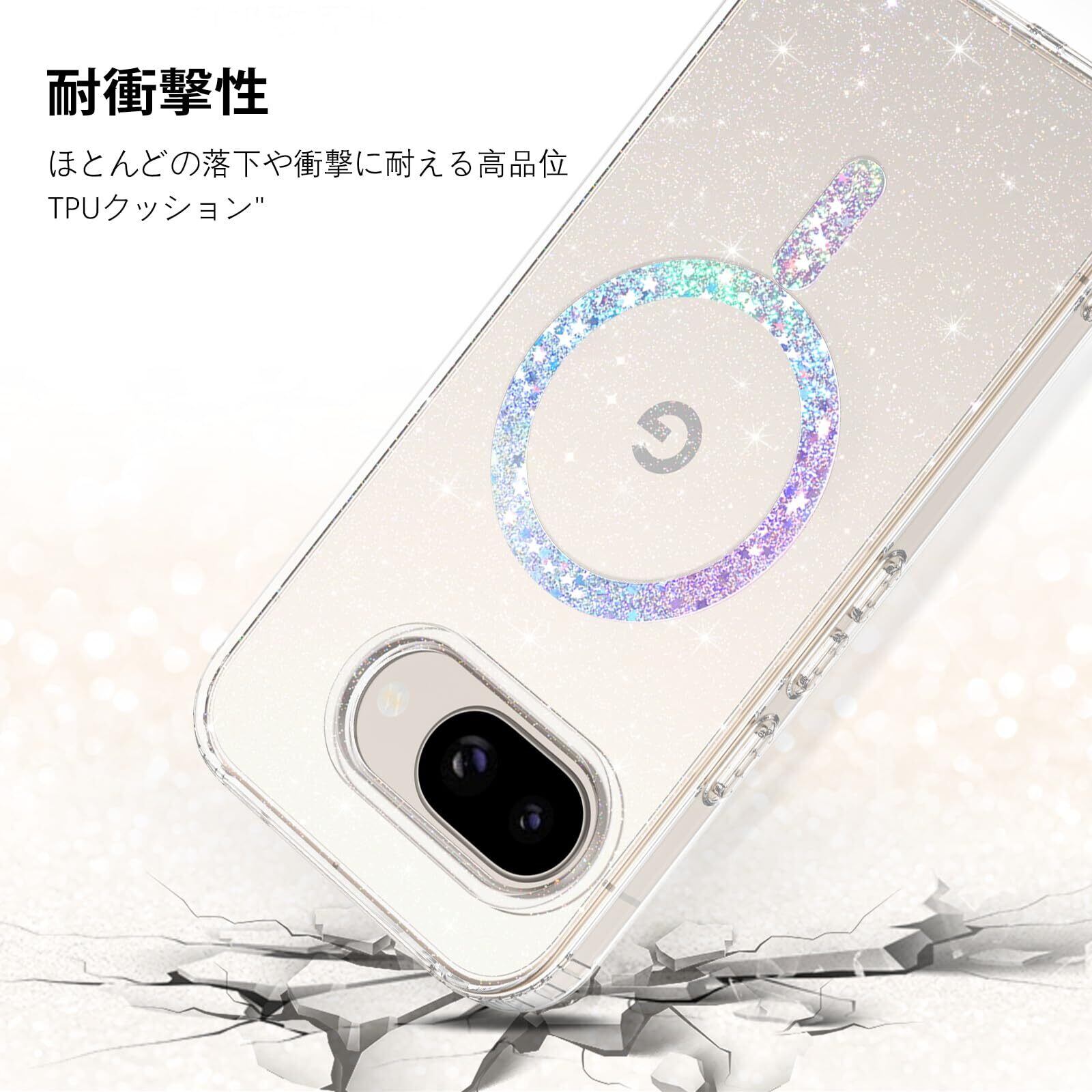 【2025新登場】YINLAI Google Pixel 9a 用 ケース クリア 耐衝撃 かわいい キラキラ マグネット式 米軍MIL規格 耐久性 黄ばみ防止 google Pixel 9aケース ワイヤレス充電対応 Google Pixel 9a 6.3インチ 用 かわいい携帯ケース 女性用