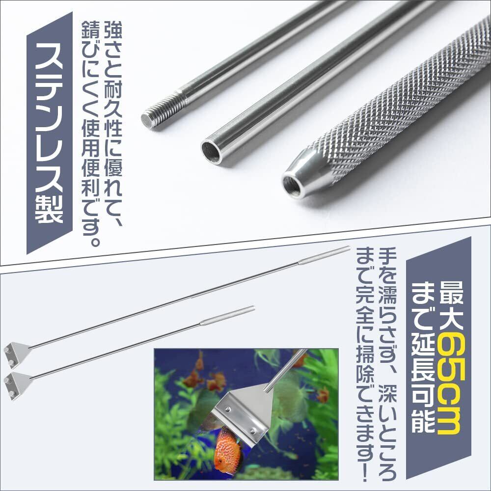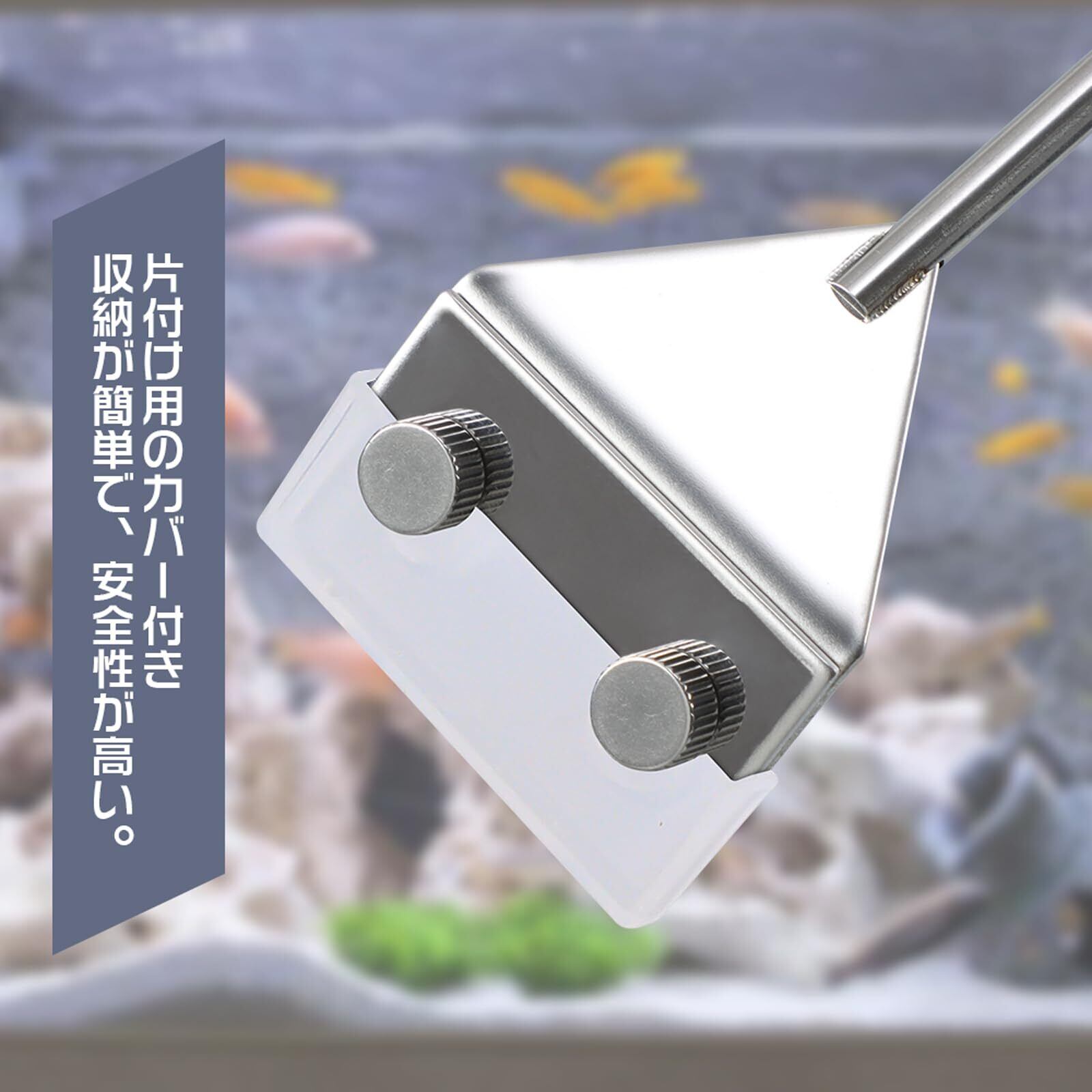 【パッケージ内容】スクレーパー本体*1本、シャフト*1本、付き刃*1枚、替え刃10枚長さ:62㎝ 材質:ステンレス 淡水、海水両方とも使用可能です。コケとりだけではなく、長さを活かして水草の移動、底砂をならしたりなどの作業にも必ず役立ちます。