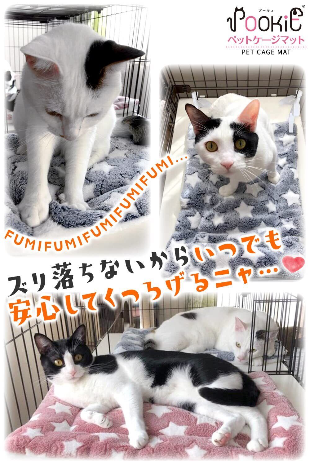 POOKIE ペット マット ケージ用 猫 ベッド 落ちない 四隅紐付き ボア あったか 柔らかい リバーシブル 洗える モフモフ ふわふわ キャットタワー ソファ (グレースター) ワンサイズ | グランメゾンショップ
