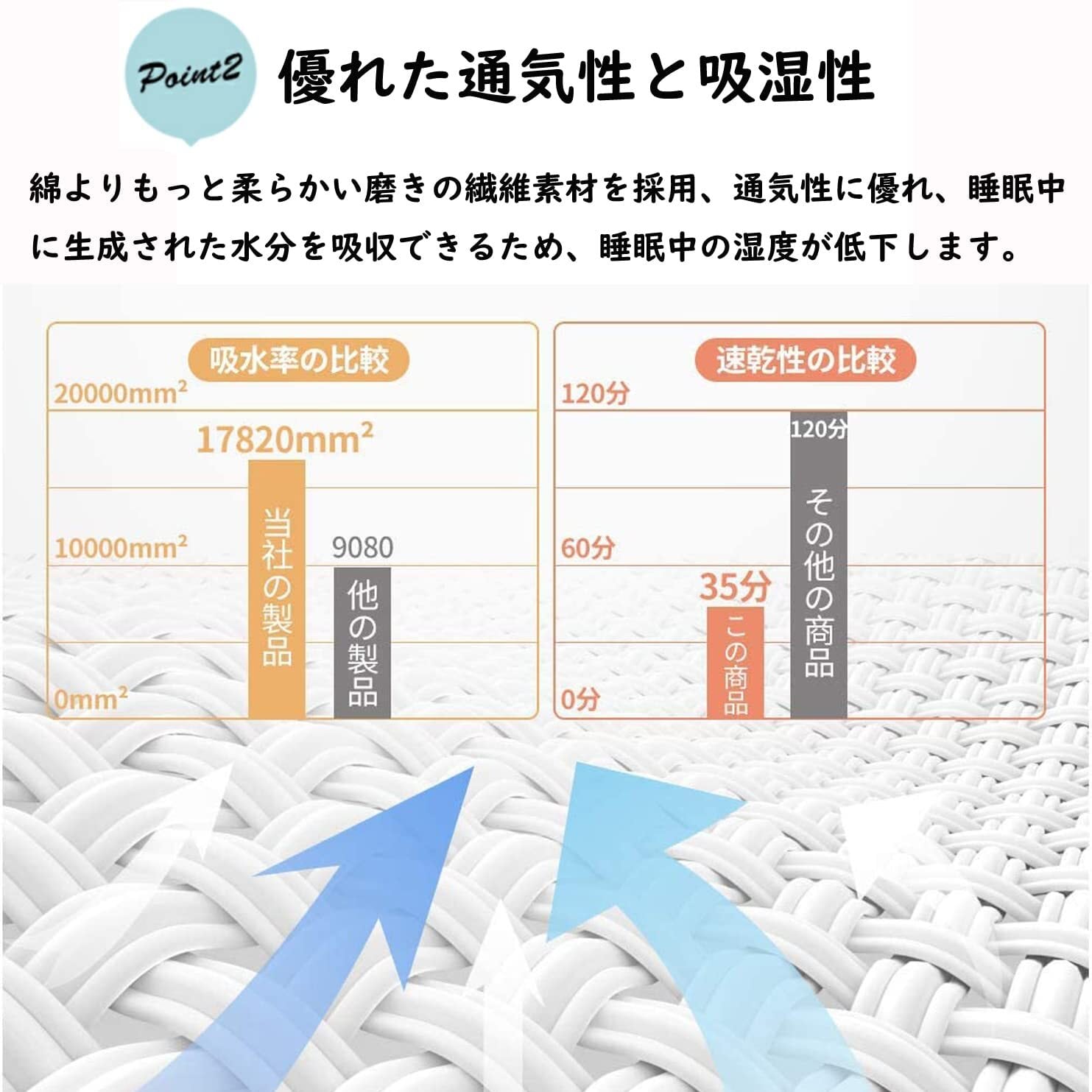 【抜群の速乾性】:速乾性に優れているので、湿気による細菌の増殖を抑えられます。夏は涼しく冬は暖か寝具で、オールシーズンに快眠環境を整えます。さらに速乾性により、梅雨の季節など、洗濯物の乾きにくい時期にも~いつも清潔!