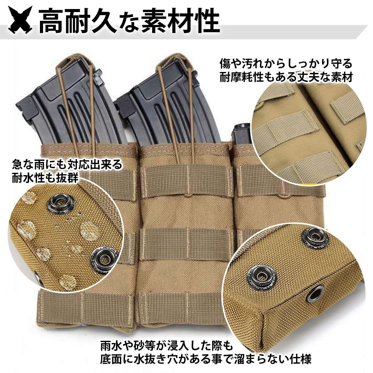 【マガジンポーチ】3連式のマガジンポーチでAK、AR、M4、M16などのマガジンに対応しております。