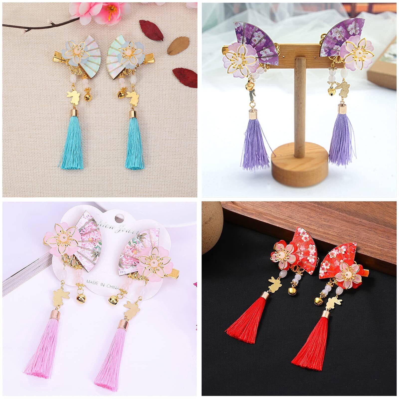 扇子 髪飾り タッセル 扇 花 ヘアクリップ 中華風 漢服 浴衣 和装 ヘアアクセサリー ヘッドドレス 子供髪飾り 入学式 卒業式 七五三 (赤)