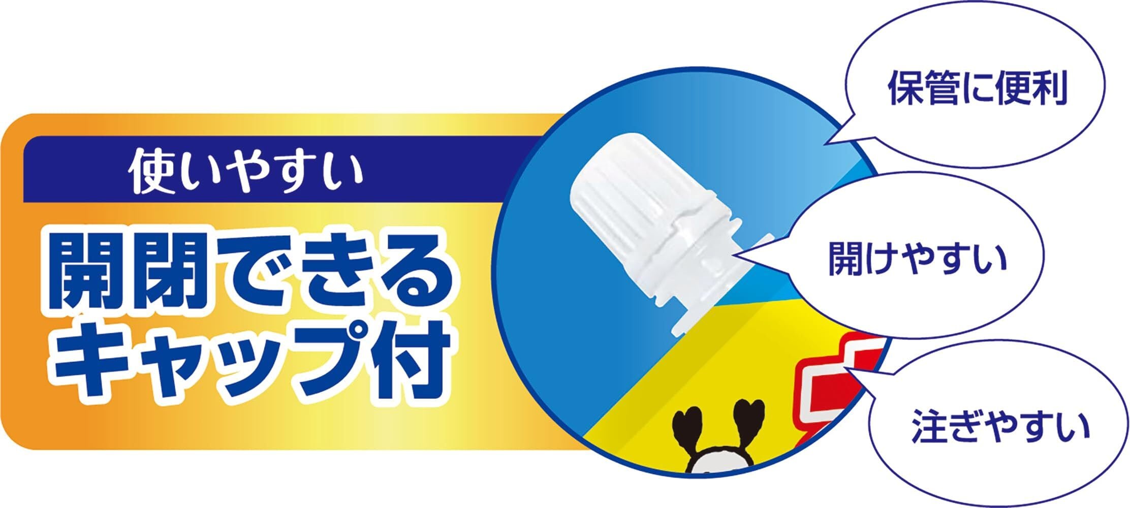 ●[シュシュット!オシッコ・ウンチ専用消臭&除菌 犬用」のボトルにつめかえてください。●パックを強く持つと液が飛び出ることがあります。 ①キャップを開ける。キャップを回して開けて下さい。 ②ボトルにそそぐ。そそぎ口を差し込み、ボトルの透明部で液面を確認しながらゆっくりと注いでください。③保管する。キャップをしっかり閉め、保管してください。
