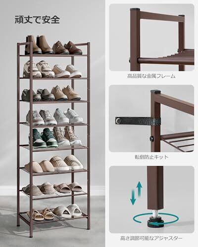 SONGMICS シューラック 8段 メタルシューラックシェルフ クローゼット 18足収納可能 組立簡単 頑丈 44.6x30.5x128.5cm LMR028A01