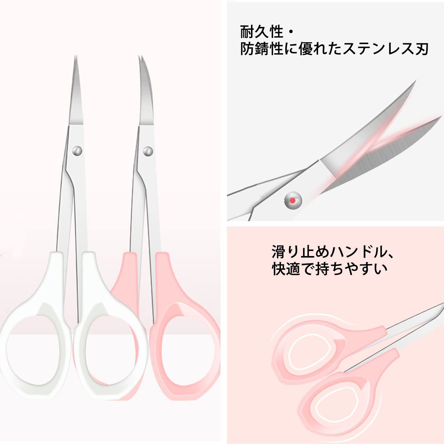 Doyime 眉用はさみ 眉毛ハサミ 眉カット (2個セット) 眉毛カッター 眉のお手入れに 整える まゆ用 眉そり 二重まぶた 化粧はさみ 甘皮ハサミ キット プレミアムステンレス製 樹脂リング付 曲ブレード 鋭い刃 錆び防ぐ 軽量 気軽 上質 オシャレ 人間工学的設計 美容 レディース メンズ 男女兼用 プロ用 ピンク+白 長さ5cm | グランメゾンショップ
