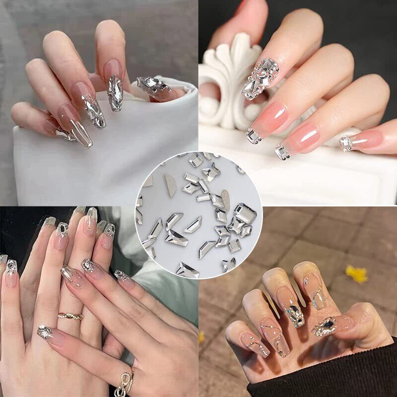 【高品質ネイルアート】高品質のガラス製で、非常に硬く、壊れにくく、輝きと明るさが長持ちし、アイテムや生活に輝きと魅力を加えます。クリスタルは軽量で保管や持ち運びが簡単なため、旅行中や仕事中に交換して使用できます。
