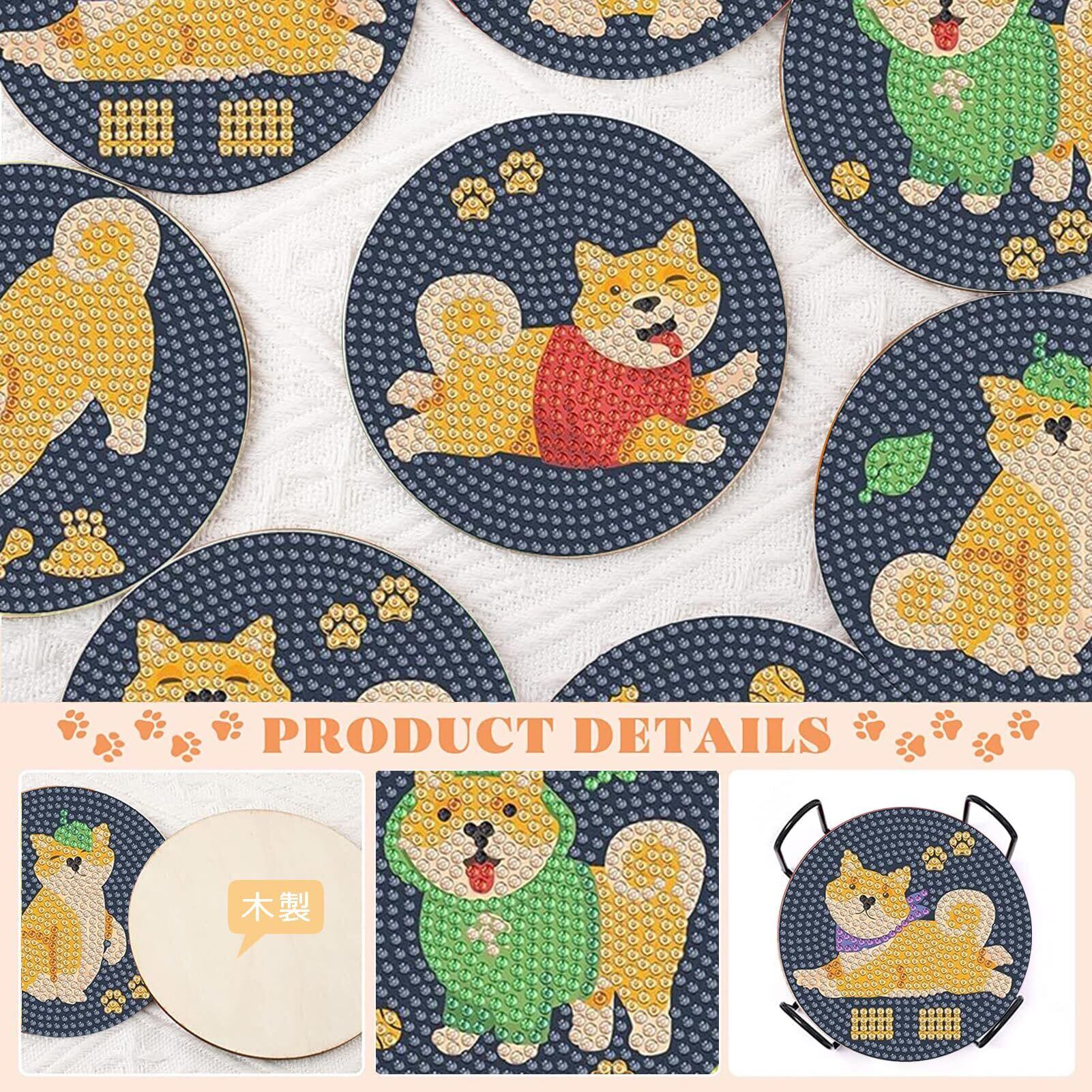 Sitengle ダイヤモンドアート コースター キット8個入 ビーズアート ダイアモンドアート セット DIYダイヤモンドペインティング 5Dダイヤモンド塗装キット ホルダー付き コースター 手芸キット 初心者、大人、子供用 人気 手作り アートクラフト用品 (8個セット 柴犬) | グランメゾンショップ