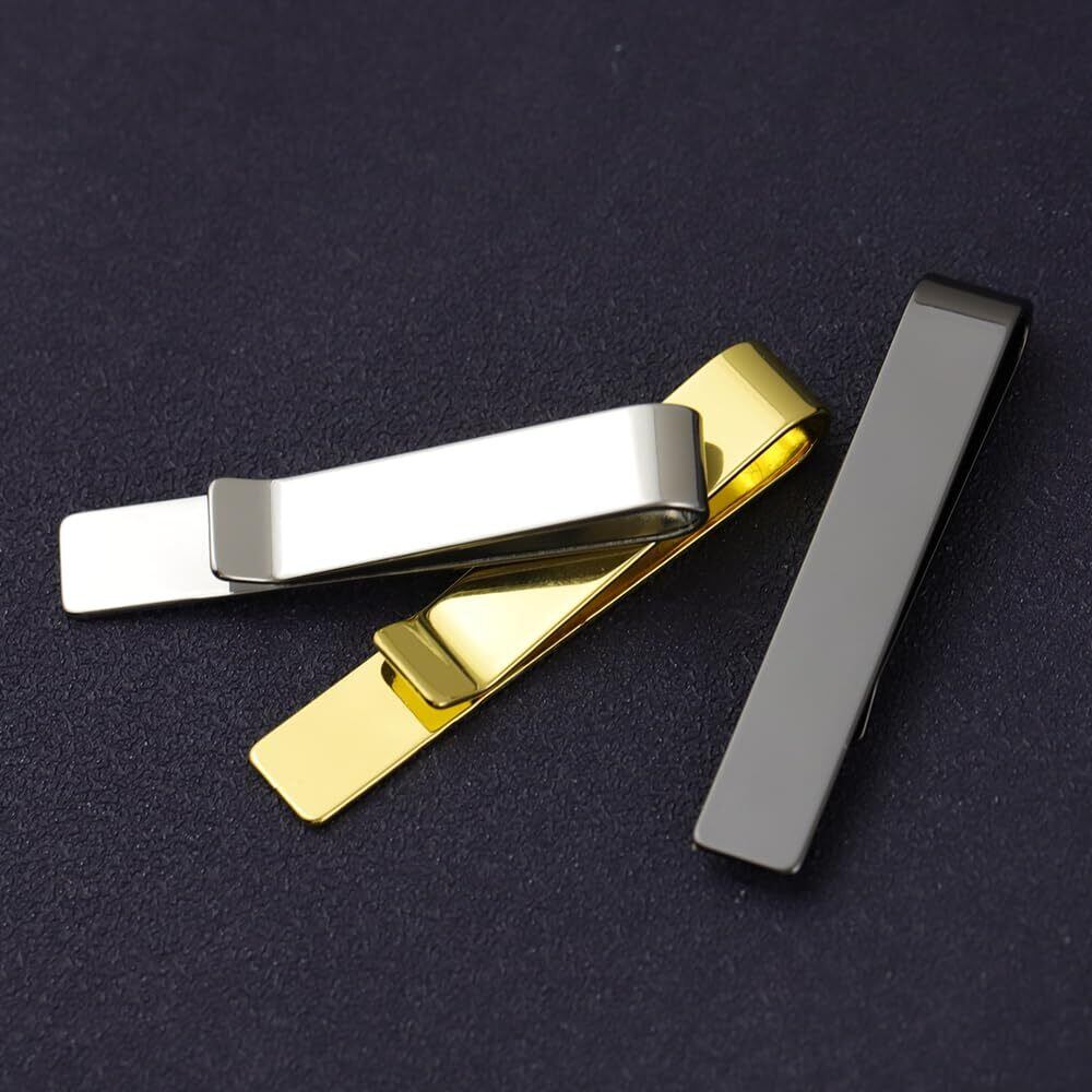 2個 ステンレスめっき ネクタイピン タイピン メンズ クリップ式 (シルバー)