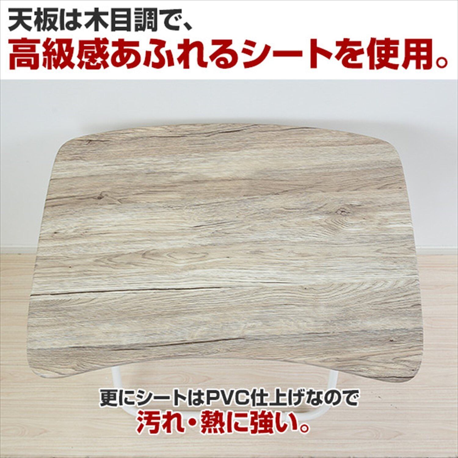 ●天板は木目調、しかも傷や汚れがつきにくいPVC貼り