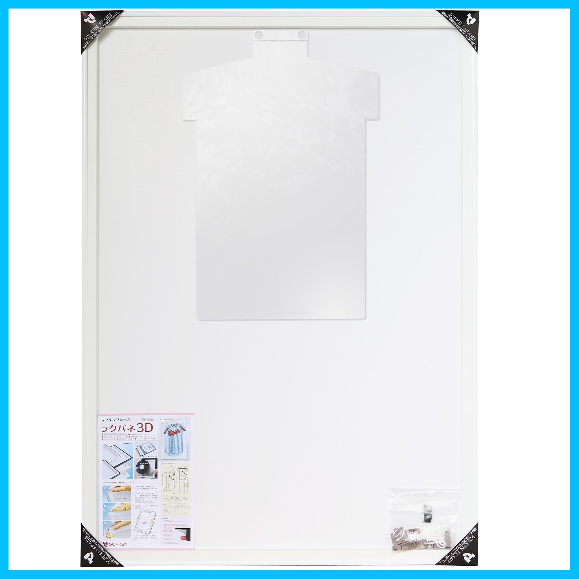 ソフケン(Sofken) アルミ額縁 ラクパネ3D ユニフォーム額 Lサイズ ホワイト 【軽量で作品セットが簡単、思い出のユニフォームやオリジナルTシャツなどをディスプレイ、透明樹脂ハンガー付き】