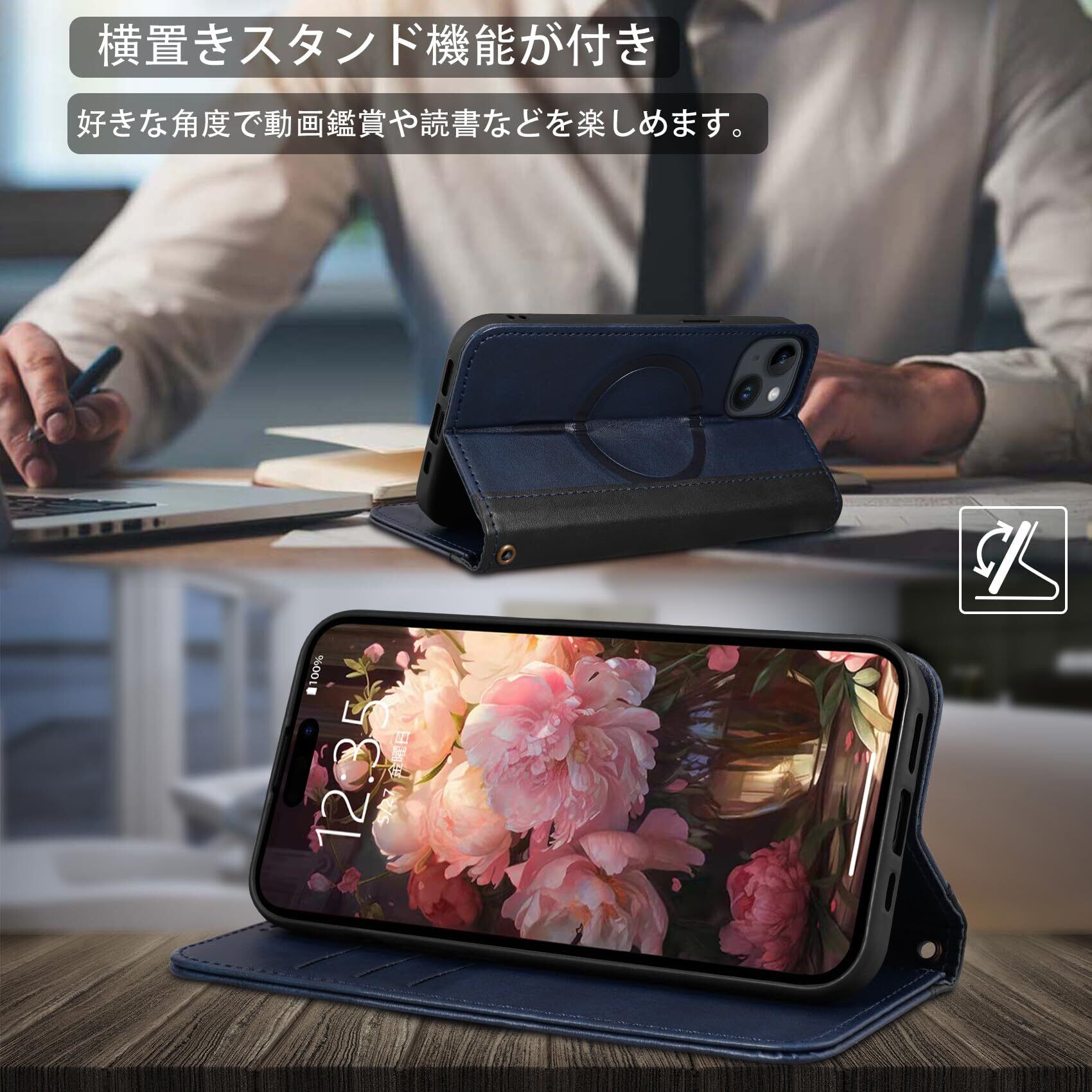 iPhone 15 用 ケース 手帳型 MagSafe対応 iPhone15 用 手帳型ケース Rssviss アイフォン15 用 ケース カード収納 スタンド機能 全面保護 衝撃吸収 スマホケース MagSafe 対応 内蔵マグネット 財布型 アイホン15 用 ケース iPhone 15 専用 MagSafe対応 手帳型ケース 6.1inch ネイビー | グランメゾンショップ