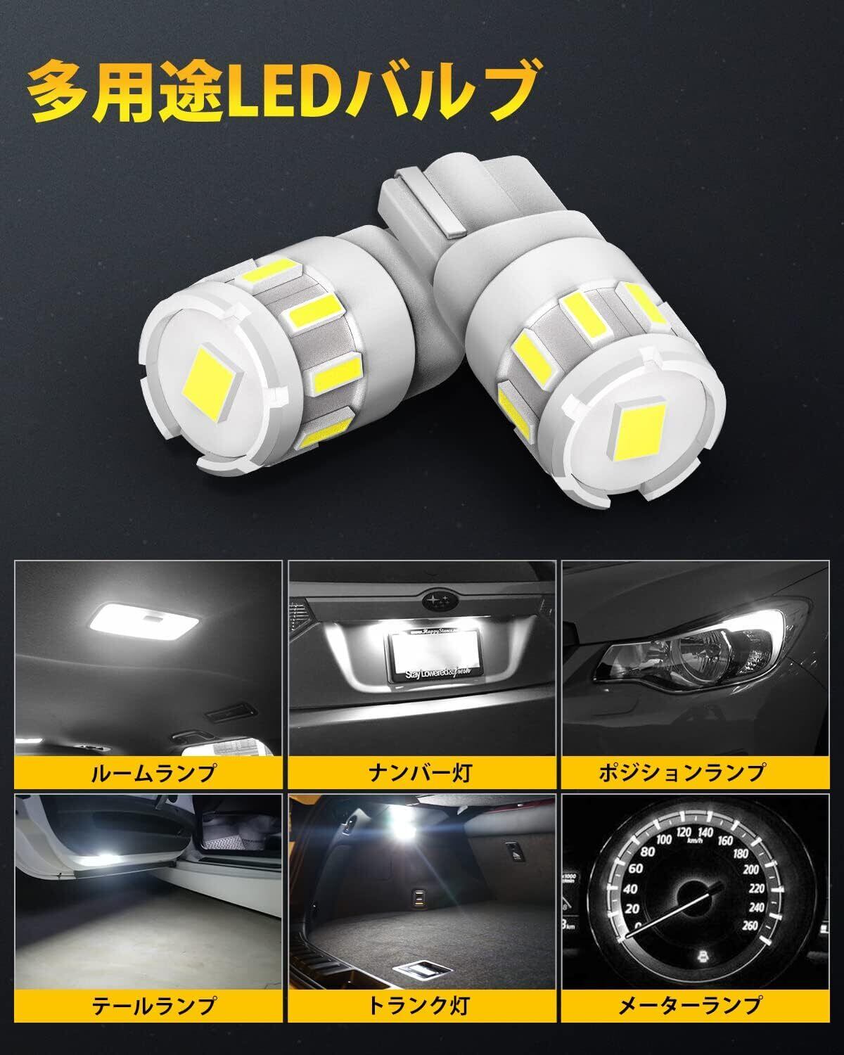【T10 LED 爆光】2023最新の高発光効率のLED素子10連搭載、明るさ1個240LMで純正バルブに比べて300% 明るさUPします!市販品より2倍以上のルーメン数、極の明るさが実現します。純正ホワイトの発光していて、夜の車内照明をやさしくなれます。