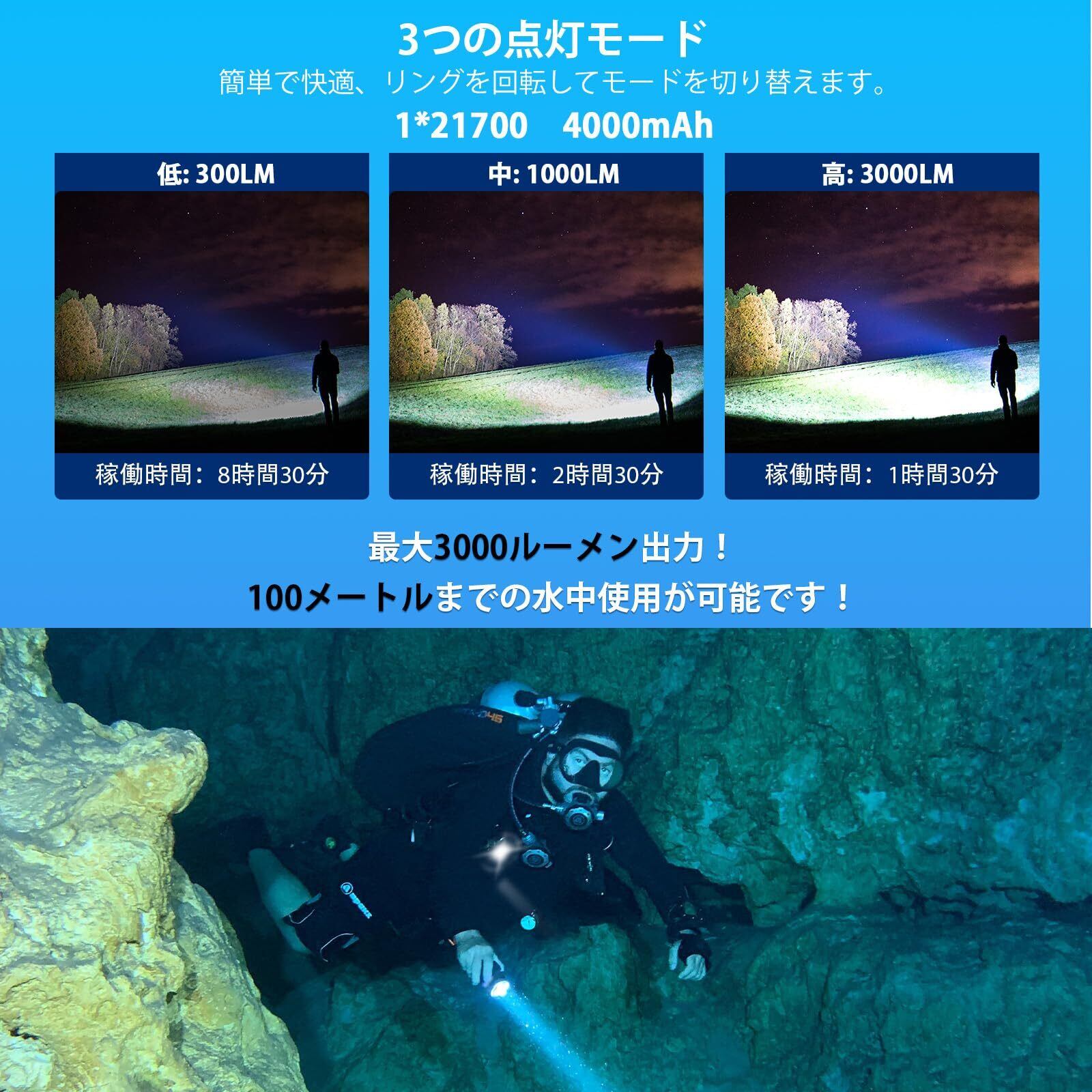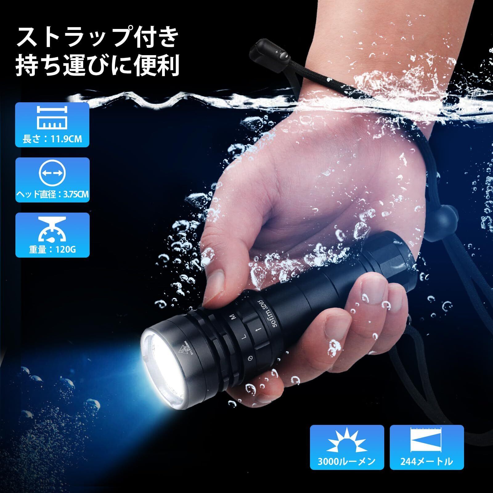 Sofirn ダイビングライト 3000ルーメン 水中100メートル マグネットリング スイッチ 三つ点灯モード 超高輝度 LED 懐中電灯 耐衝撃 探検 ナイトダイビング 水中ライト 釣り キャンプ 防災グッズ 日本語説明書付属 | グランメゾンショップ