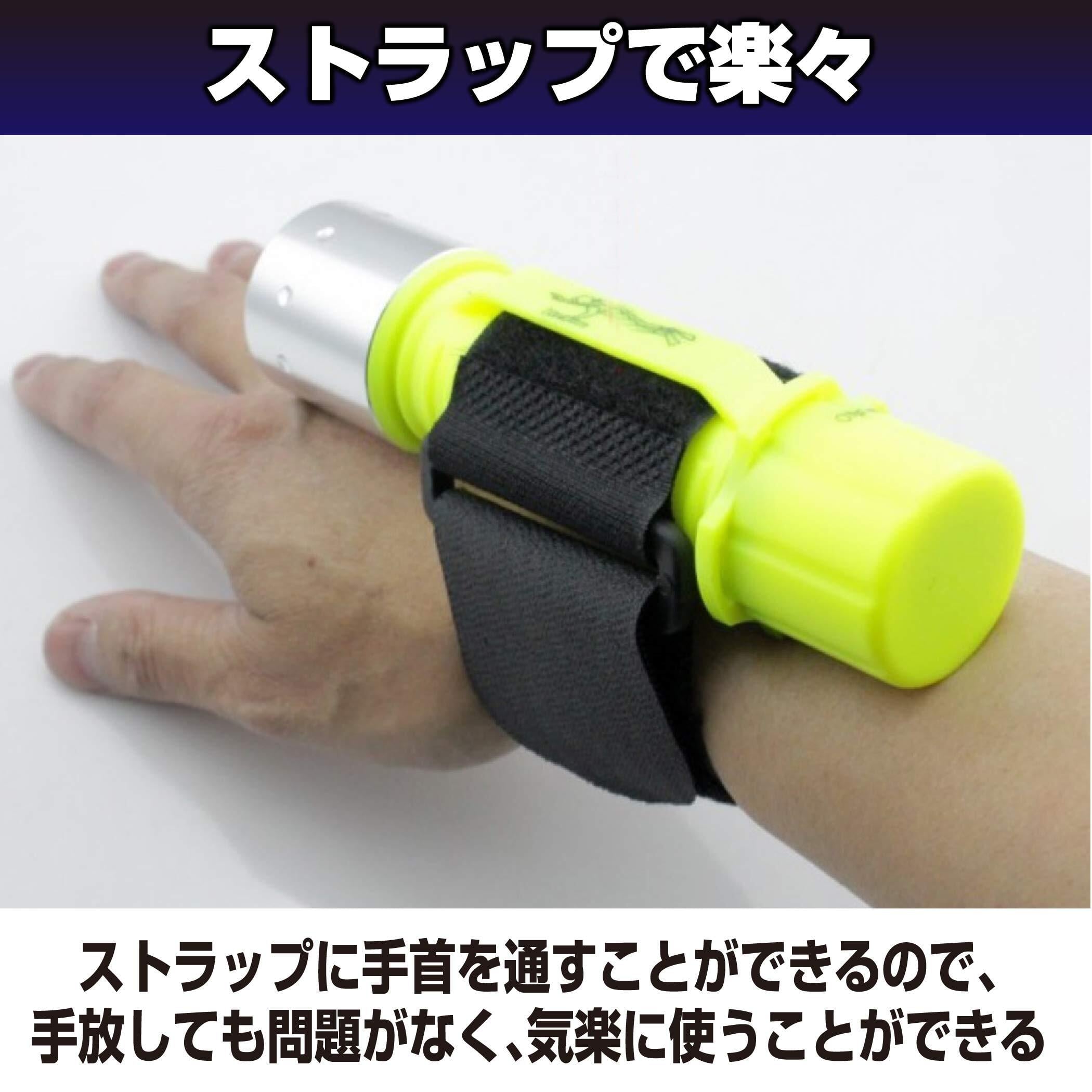 ストラップで楽々:ダイビングの時にグローブをはめると指先の感覚は鈍くなりがちです。そんな時にはこのダイビングライトに付いているストラップを使いましょう。ストラップに手首を通すことができるので、手放しても問題がなく、気楽に使うことができ、おすすめです。