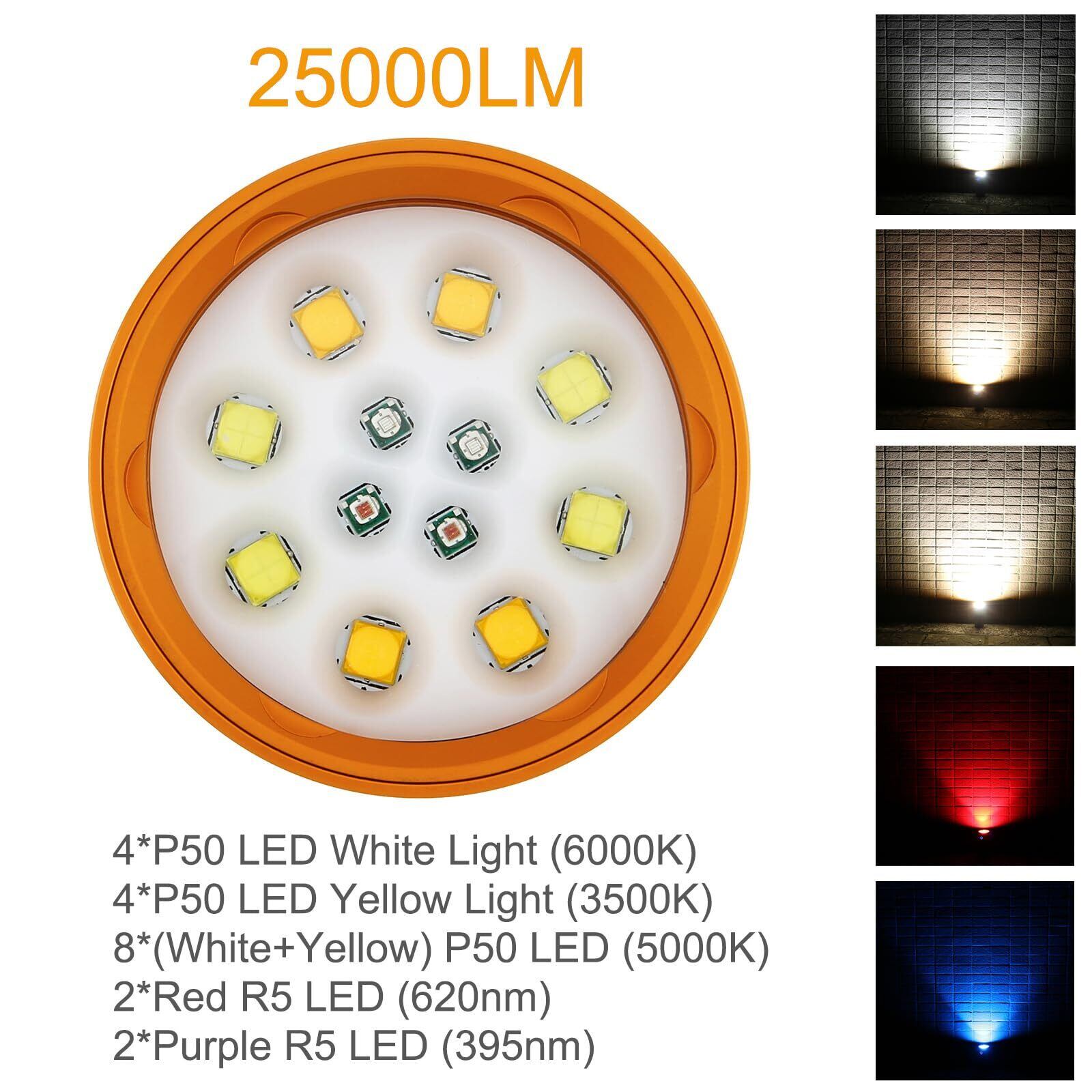SecurityIng DF15 水中ライト 25000ルーメン 水中100m 広角ダイビングライト スキューバダイビング用懐中電灯 Type-C充電式 IPX8防水 プロのダイビング/水中撮影用 | グランメゾンショップ