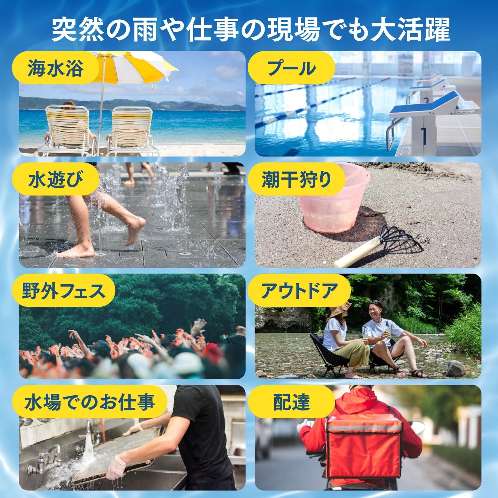 ▶▶▶【ミズアソビとは】ベルモンドのミズアソビは、海やプール、アウトドアやフェスで大活躍の、IPX8準拠の防水バッグです。▶▶▶【防水性能】IPX8準拠。0から8まで9段階にわけられる防水等級(IPX)の中でも、高い防水性能を持つIPX8。IPX8は、IPX7と同様に最大30分間、1mの水深での浸水に対して保護性能を持ち、さらに過酷な環境での使用にも対応しています。※ご使用の際はIPX7程度のシーンでの使用を推奨いたします。