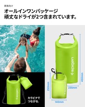 【小物用2L防水バッグ付き】スマートフォンや財布、イヤホンなどの貴重品を水や汚れからしっかり守る、便利な2Lサイズのバッグが付属しています。