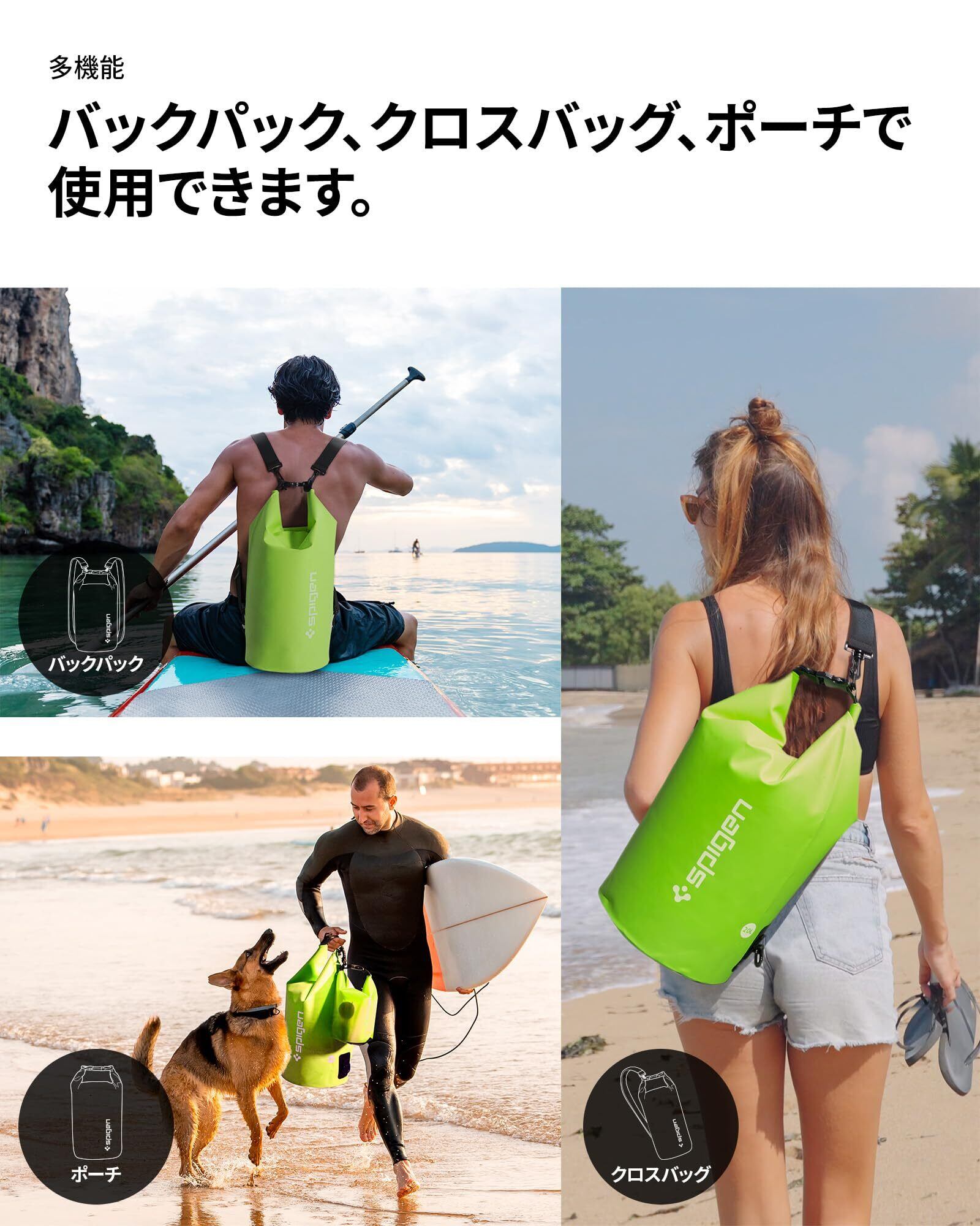 Spigen 完全防水 ドライバッグ 20L + 2Lセット 大容量 リュック 防水バッグ IPX6認証 海 プール ダイビング 釣り キャンプ A630 AMP06027 (カクタス・グリーン)