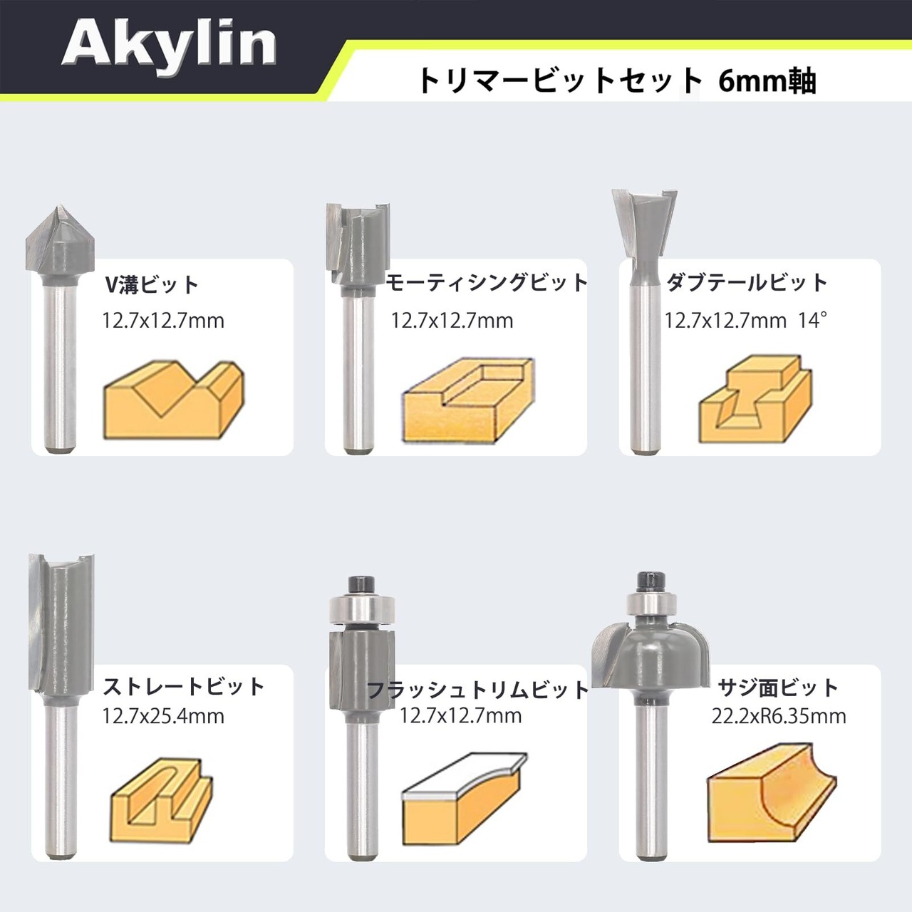 【6mm軸対応】日本国内で多く使われている6mmシャンクを採用。多くの国産トリマーにそのまま使えます。