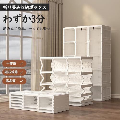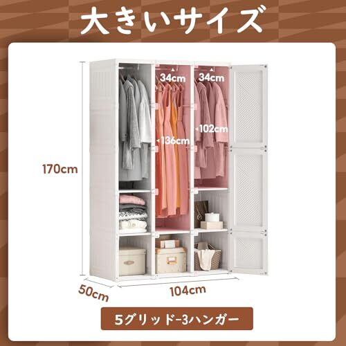 Mayi Box ワードローブ クローゼット 大容量 ハンガーラック シンプル収納棚 衣類ケース 一体折り畳み式 洋服収納ラック 扉付き 雑物 小物 耐荷重 省スペース 頑丈 リビング (5グリッド-3ハンガー)