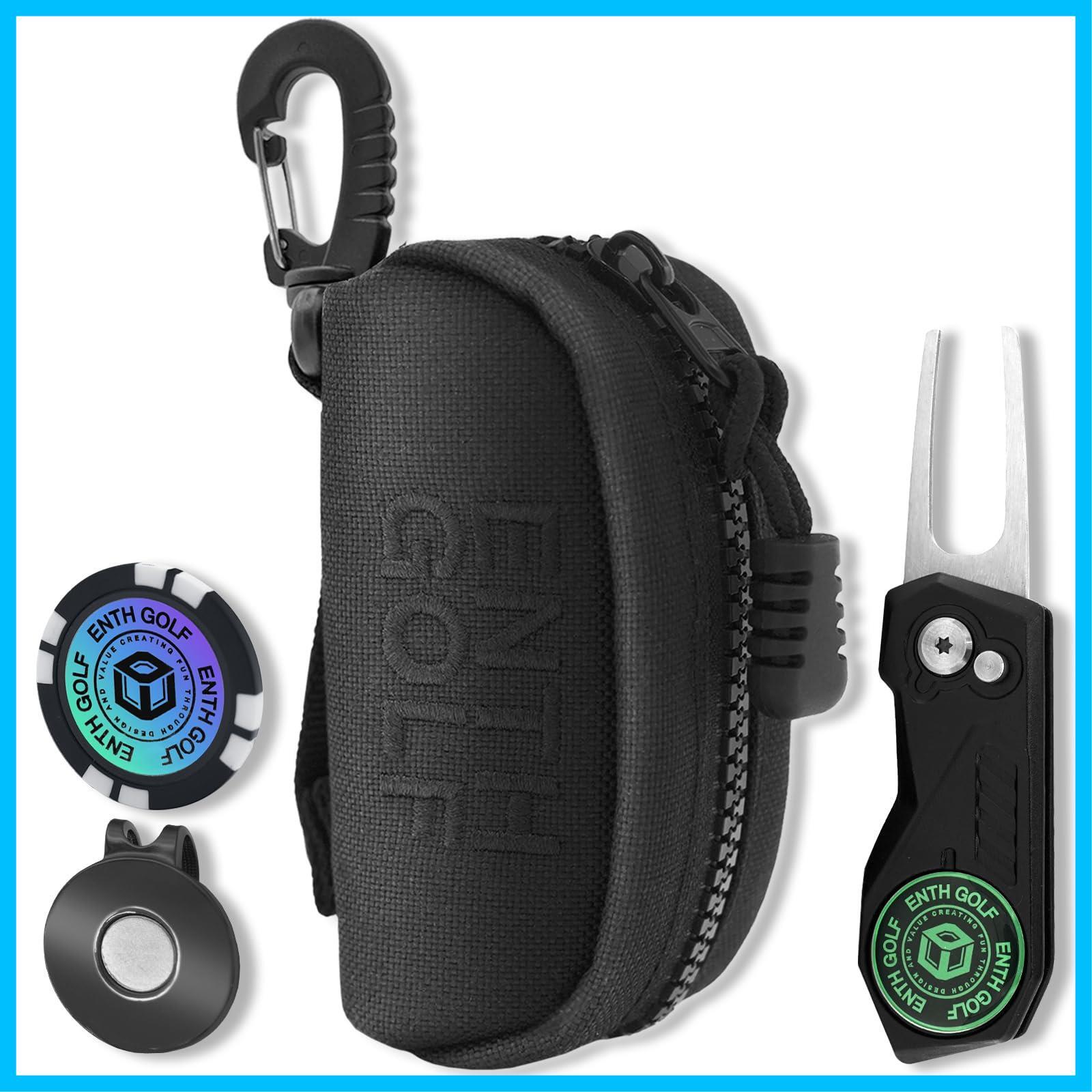 ENTH 1000D 高耐久ナイロン ゴルフボールケース【2個用】開閉式グリーンフォーク ゴルフ マーカー ハットクリップ 4点セット