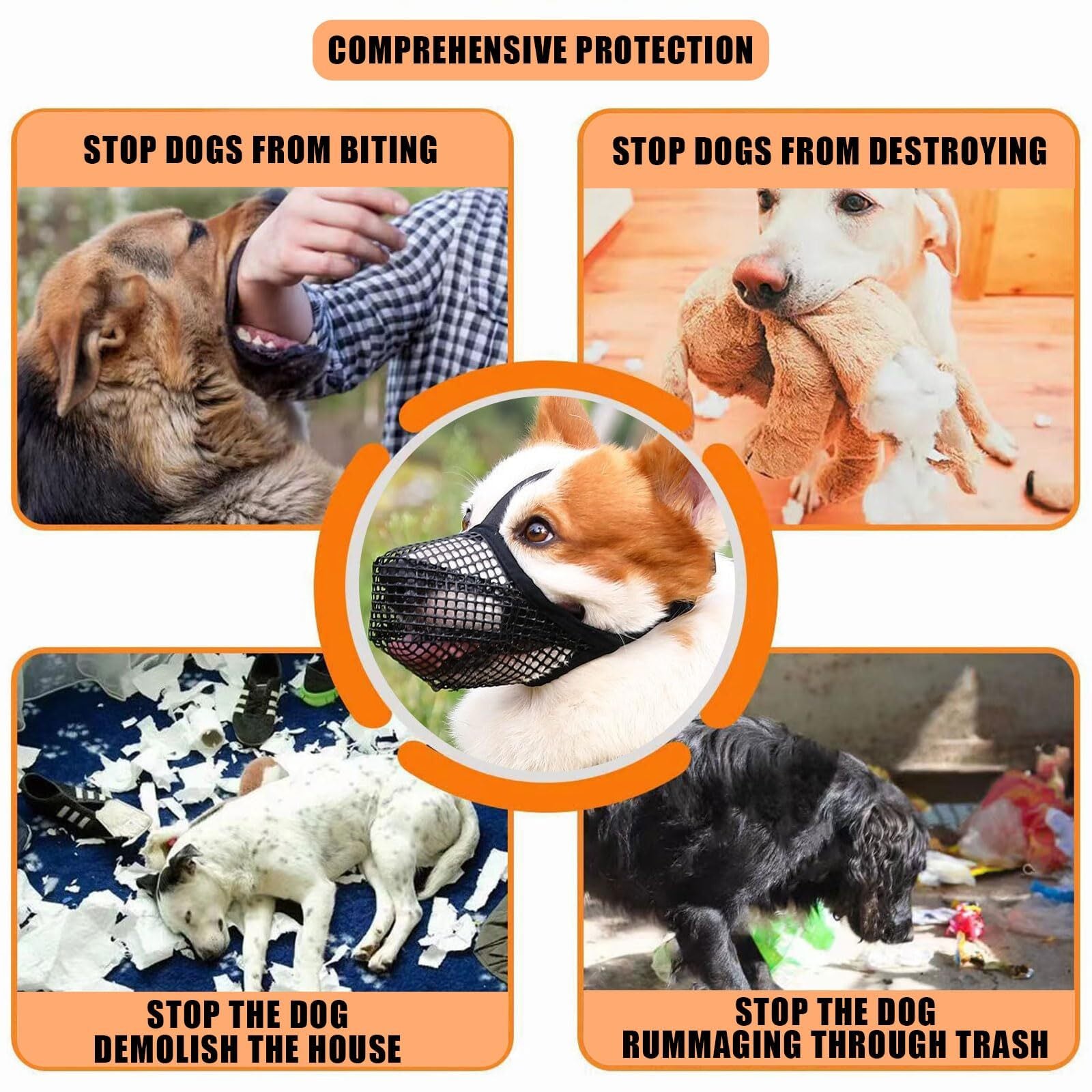 犬 口輪 犬用マズル 通気 メッシュ 無駄吠え防止 噛み付き防止 家具噛み防止 拾い食い防止 傷舐め防止 犬用口輪 小型犬 中型犬 大型犬用 マウスカバー ペットグッズ (ブラック, XL) | グランメゾンショップ