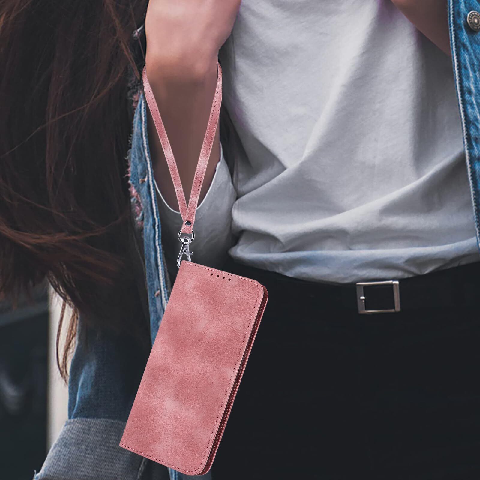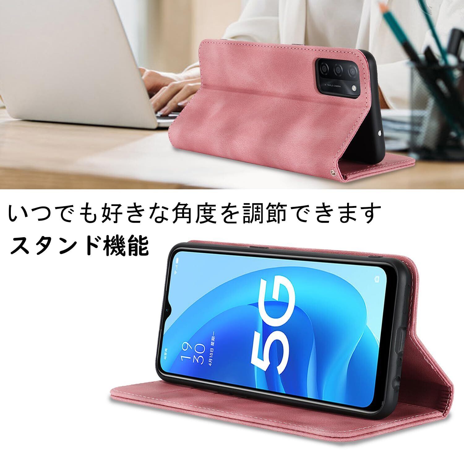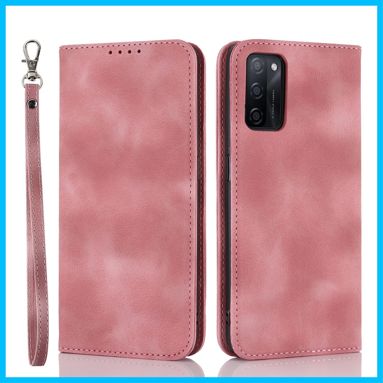 Havaya OPPO A55s 5G ケース オッポA55s 5G ケース A102OP スマホケース CPH2309 docomo/au 手帳型 ストラップ 耐衝撃 SoftBank A55s 5G カバー 楽天モバイル マグネット式 カード収納 レザー スエードの質感-ピンク