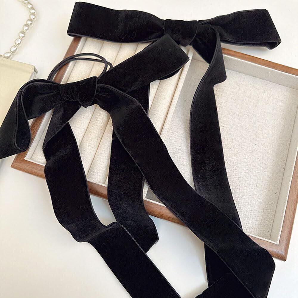 YINKE ベロア リボン ベロアリボン 黒 生地 ヘアアクセサリ 髪飾り おしゃれ 髪に優しい シンプル 静電気防止 上品 大人可愛い