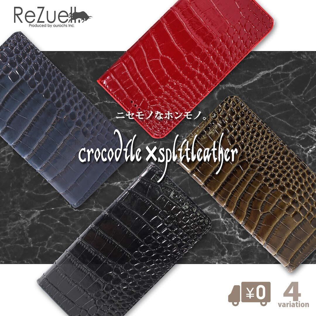 ReZuell. スマホケース クロコダイル 牛革 手帳型 レザー ケース iphone11pro MAX レッド