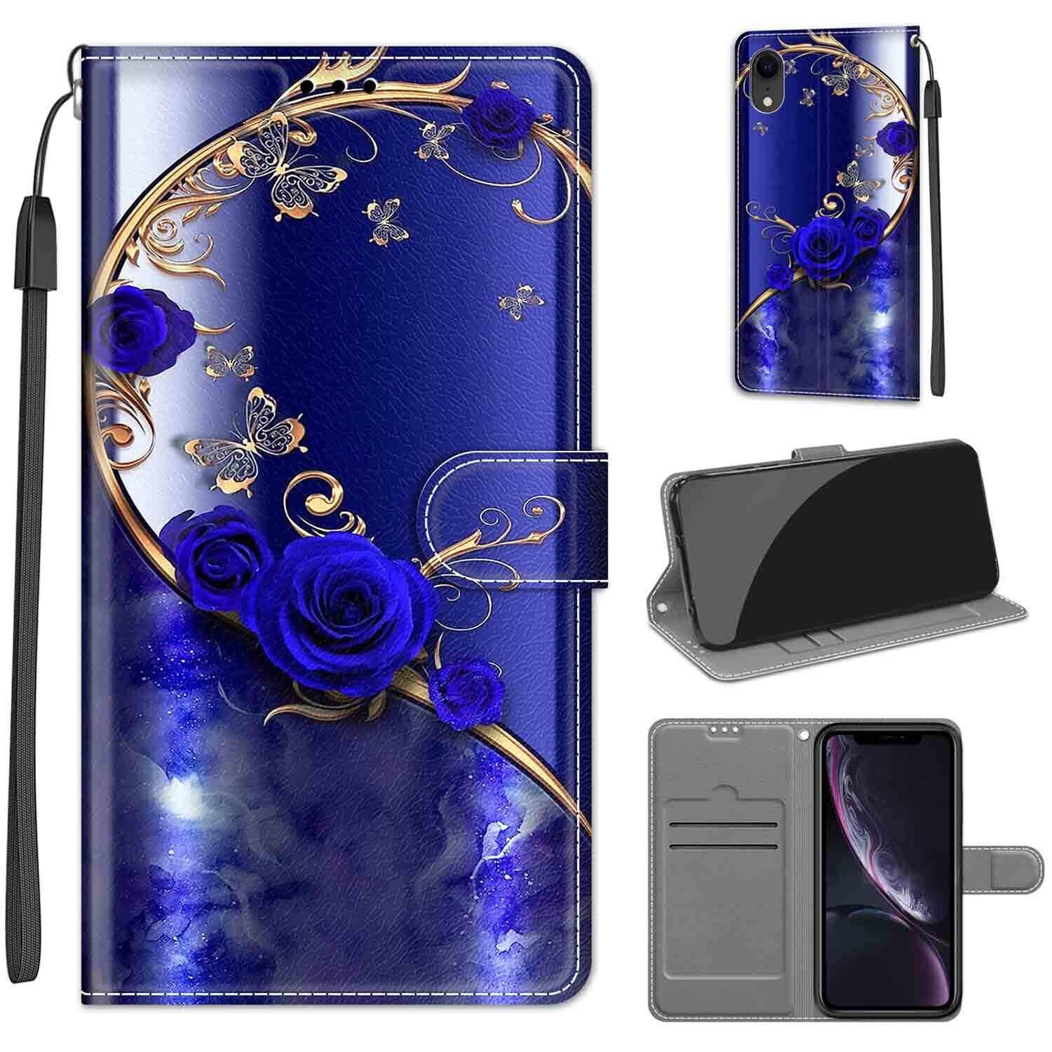KENHONER 【iphone xrケース 手帳型】iphonexrケース 手帳型 スマホケース iphone xr アイフォンxrカバー 手帳型 アイホンxrケース手帳型 肌触り良い 肌感レザー xr ケース 手帳型 内蔵マグネット 耐衝撃 iphone xr ケース 手帳 全面保護 iphonexr 手帳 防塵 iphonexr手帳型ケース手帳【6.1インチ対応】 バラの蝶