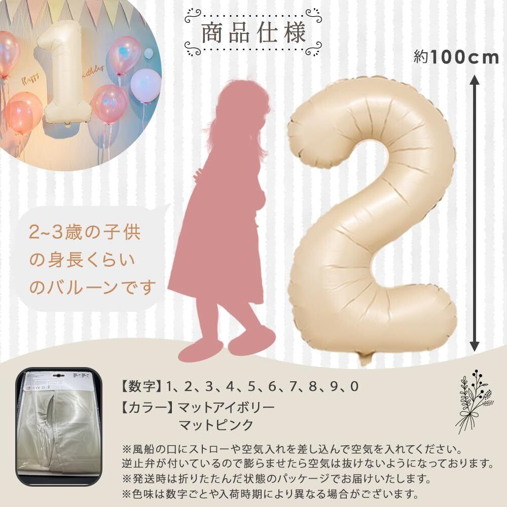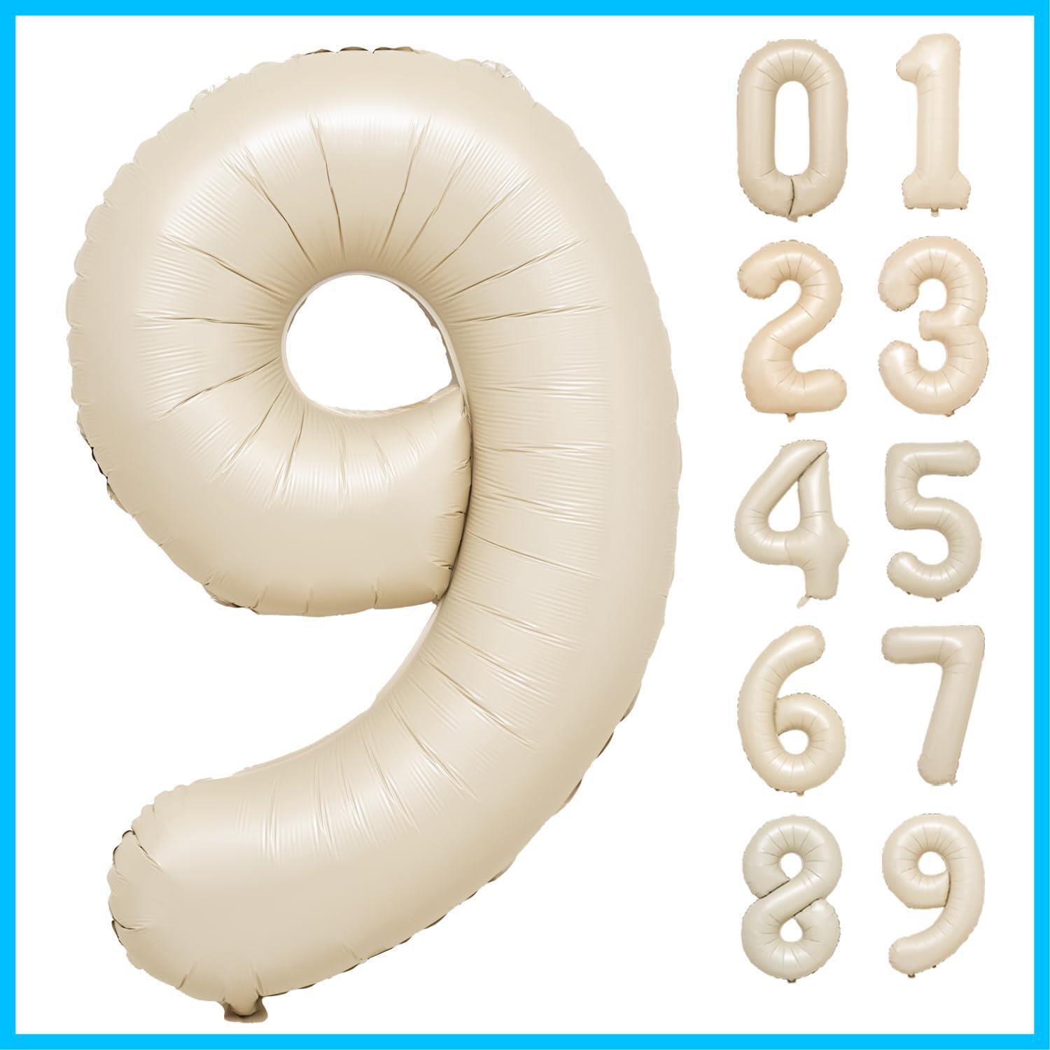数字バルーン 大きい 誕生日バルーン 飾り付け 風船 約100cm バースデーバルーン (数字9, マットアイボリー)