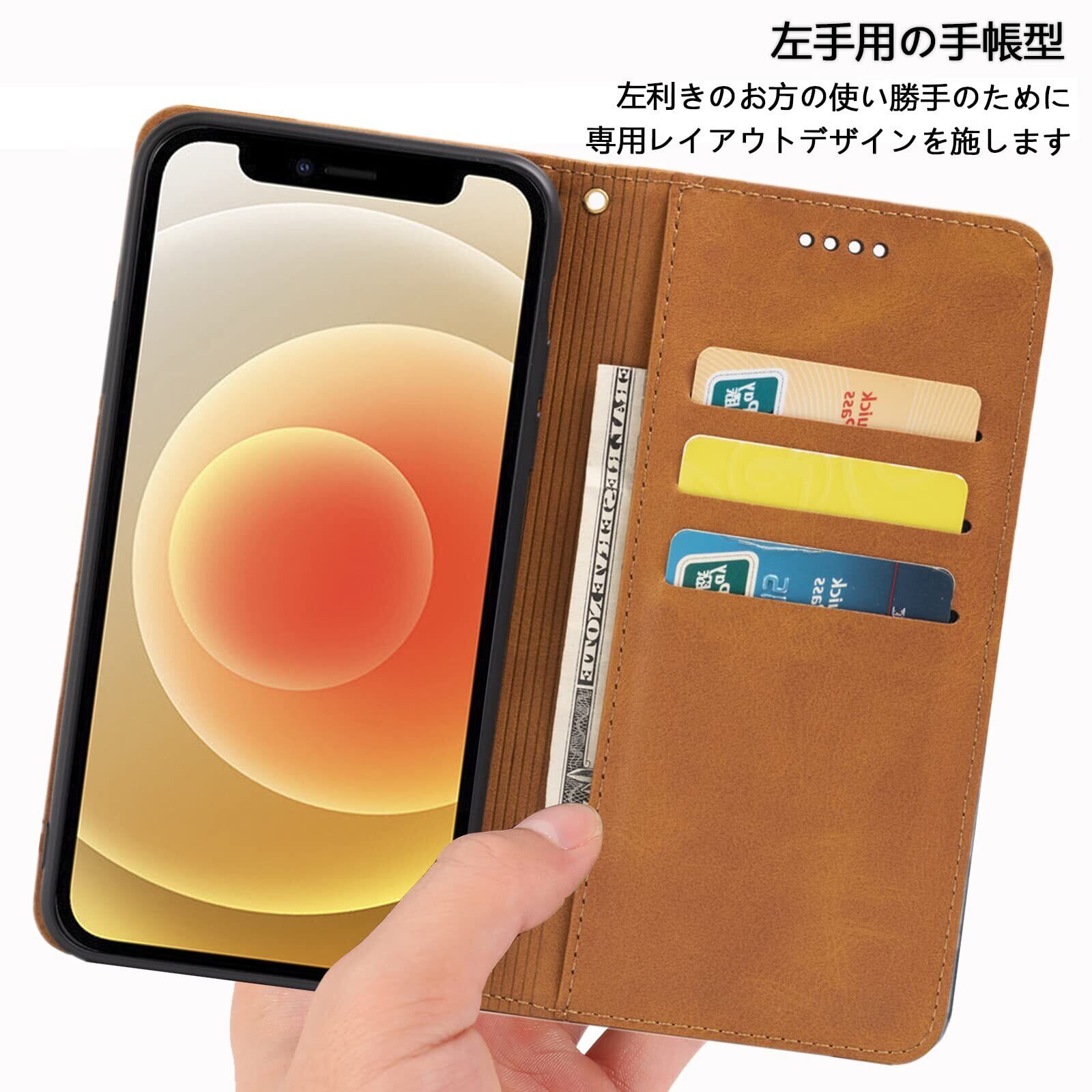 【 左利き 】 iphone 13 ケース 手帳型 左利き アイホン 13 右開き 適用 アイホン13 スマホケース 左利 アイフォン13ケース 手帳 アイフォン13 左利き用 左手 カバー アイフォン13手帳 iPhone13 case 【GoKIGIoD】 左手用 財布型 内蔵マグネット 弱磁 スタンド カード収納 ストラップホール カードケース ストラップ 同梱 レトロ ライトブラウン