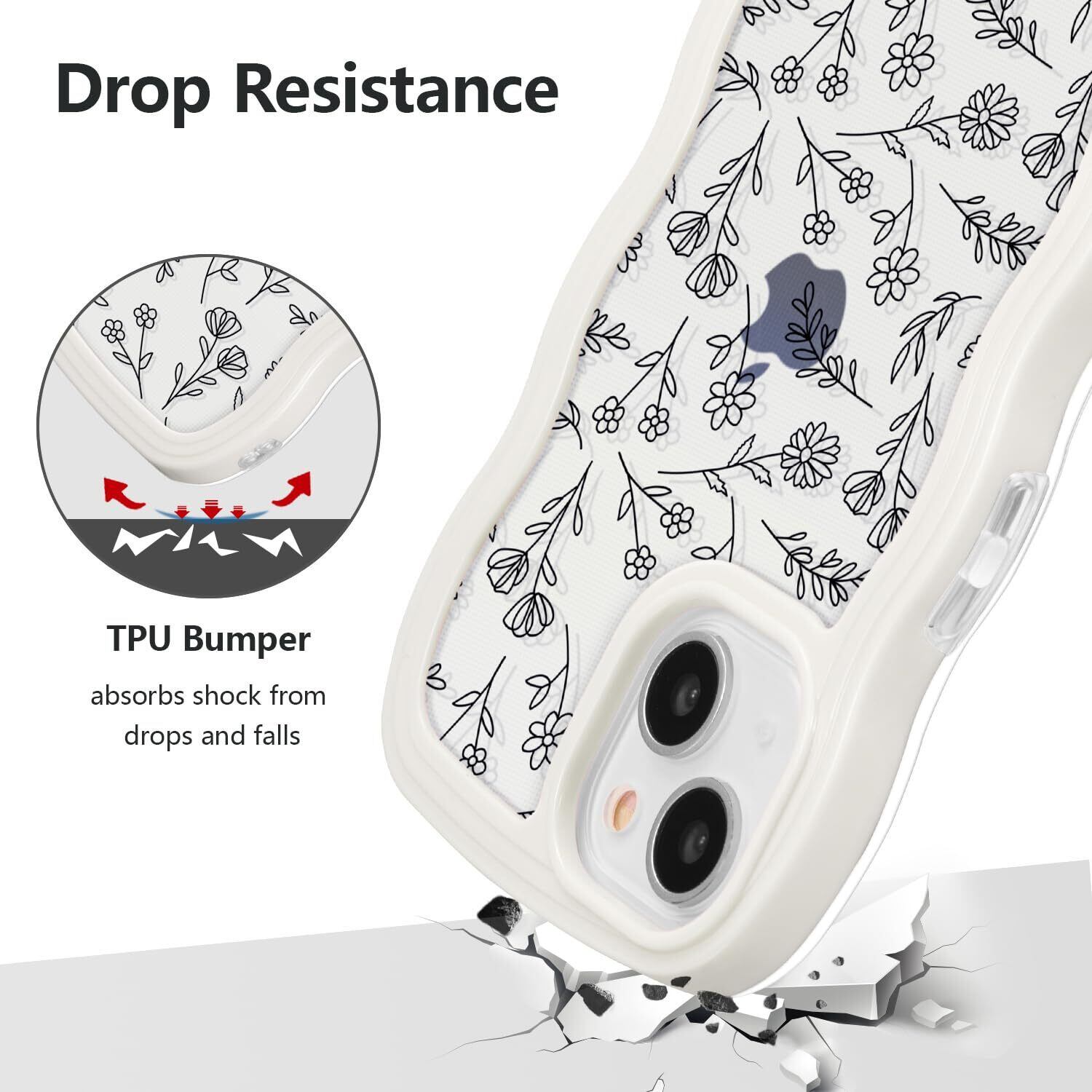 QLTYPRI iPhone 15 用ケース クリア TPUカバー ウェーブ おしゃれ 韓国 可愛い 花柄 iPhone15 用ケース 透明 薄型 軽量 耐衝撃 スマホケース ワイヤレス充電対応 いphone15 ケース ストラップホール付き アイフォン 15 ケース 6.1インチ 対応 - ブラック/ホワイト | グランメゾンショップ