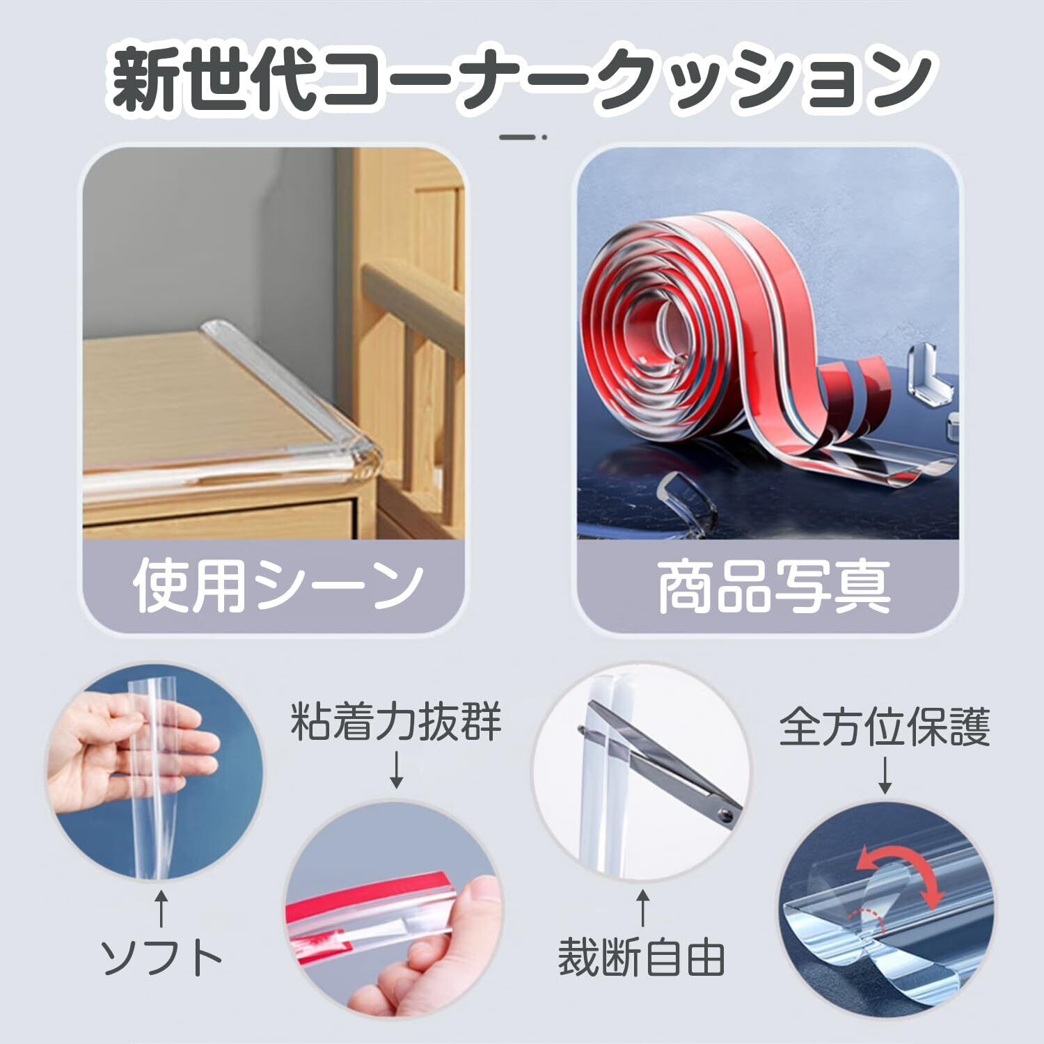 RAYKING コーナーガード 透明 クッション コーナークッション コーナーカバー 剥がせる赤ちゃん 角パーツ×4 ベビーガード セーフクッション 赤ちゃんガード セフティーグッズ ケガ防止 ぶつかり防止 安全対策 子供 怪我防止 クッション 転倒防止 6m | グランメゾンショップ