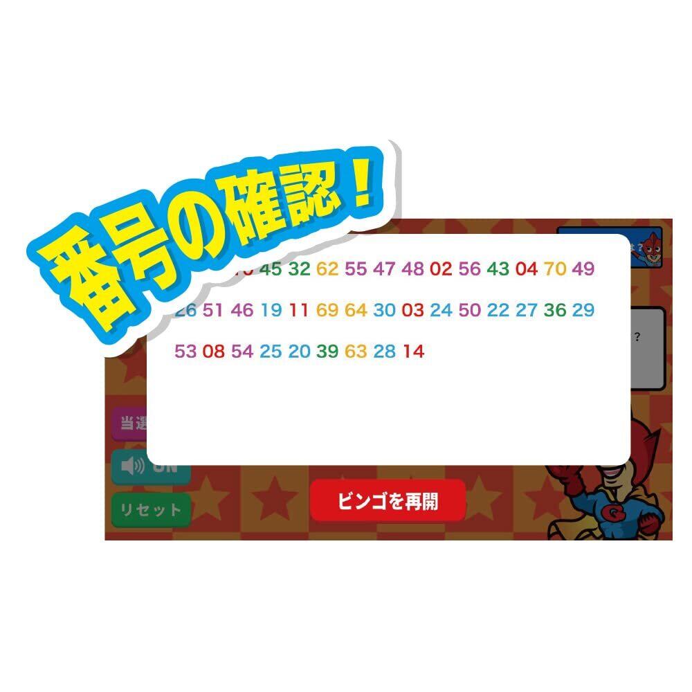 番号は1~75まで。一般的なビンゴ抽選機でも遊べます。番号の配列パターンは全部で300種類あります。最大で300名まで対応可能です。