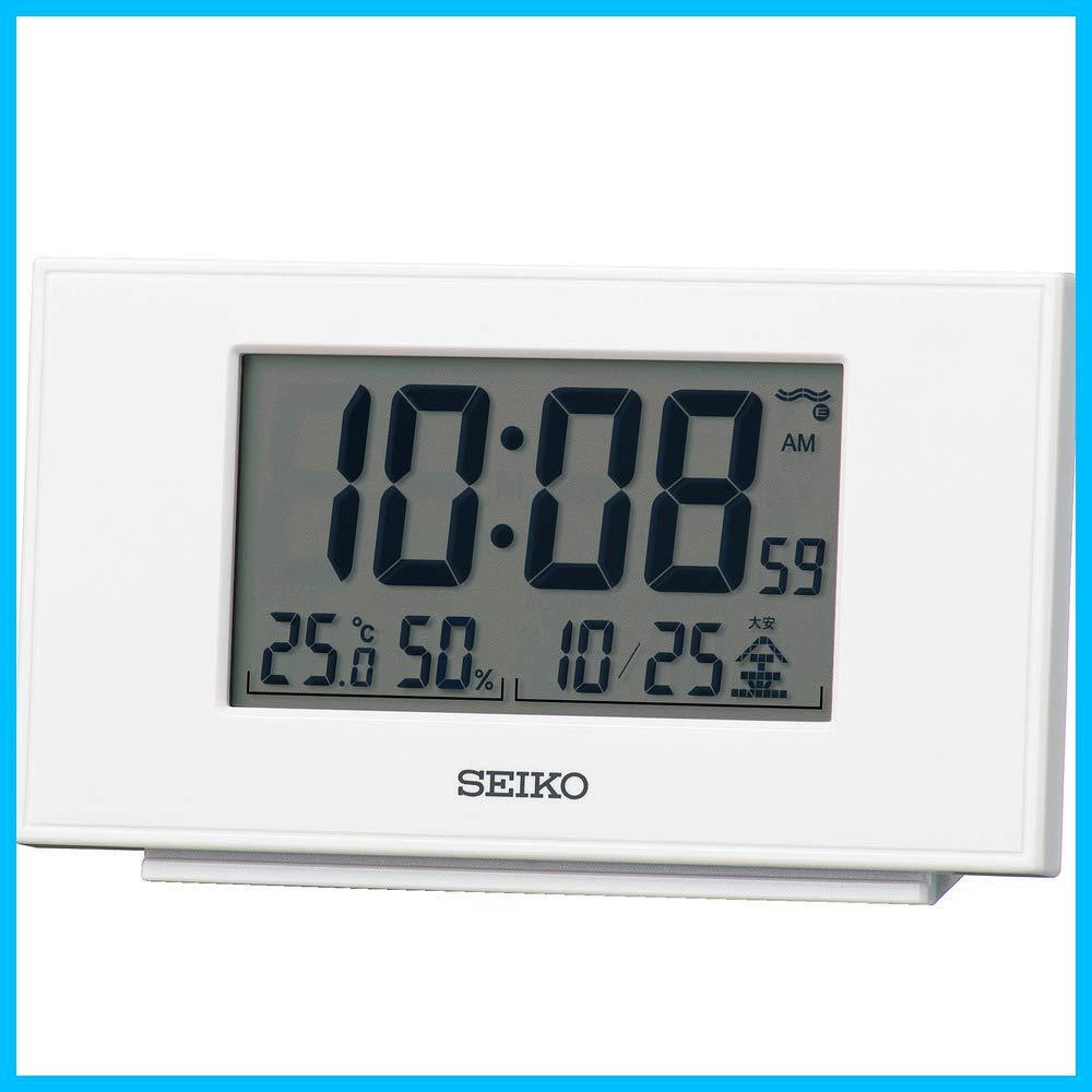 セイコークロック(Seiko Clock) 置き時計 白パール 本体サイズ:7.8×13.5×3.8cm 目覚まし時計 電波 デジタル カレンダー 温度 湿度 表示 SQ790W