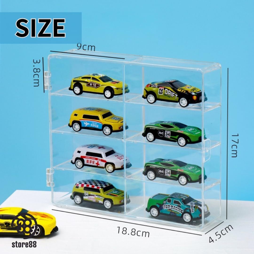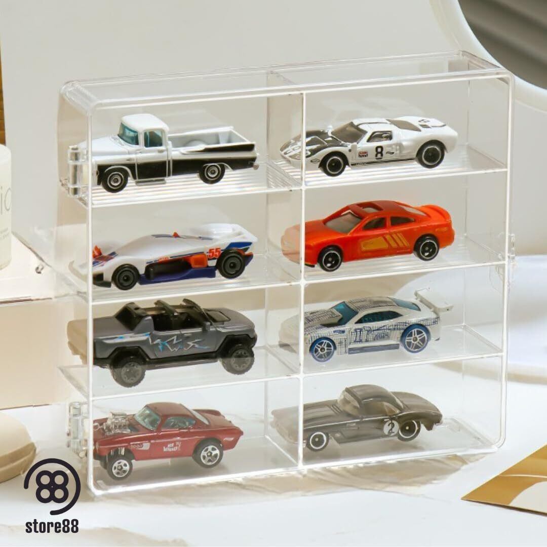 【ミニカー収納ケース】透明なデザインの収納ケースは、お気に入りのミニカーを美しく整理できます。ディスプレイ用としても優れており、コレクションを見せる楽しみを提供します。高品質なプラスチック素材を使用し、ホコリや汚れからしっかり保護します。お子様から大人まで、コレクターにおすすめの収納アイテムです。
