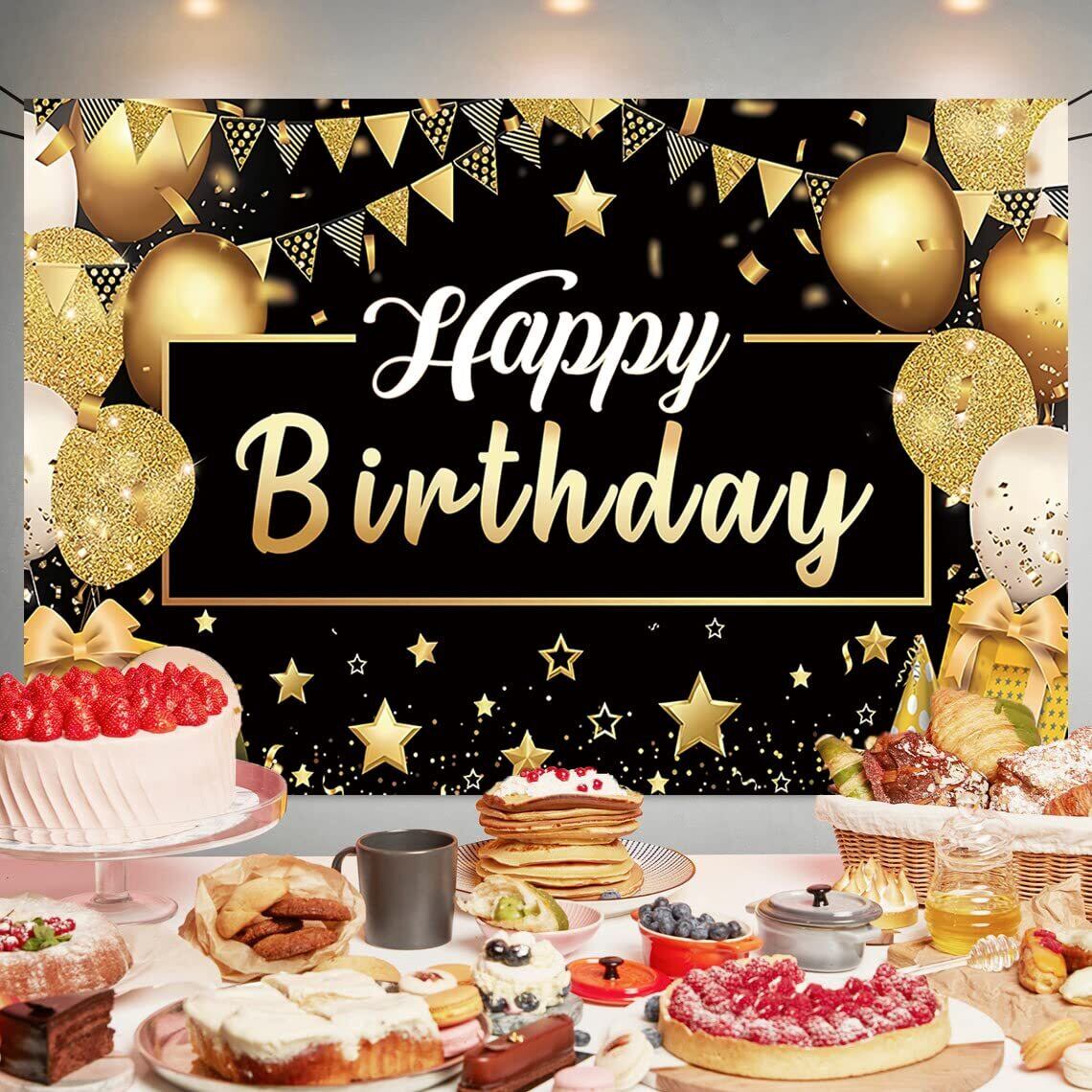 ブラックゴールド バースデー タペストリー ブラックゴールド 誕生日 飾り付け バースデー フォトポスター 写真背景 Happy Birthday パーティー タペストリー おしゃれ 誕生日 デコレーション | グランメゾンショップ