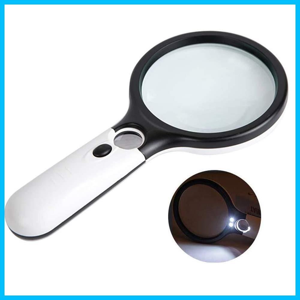 YFFSFDC 手持ちルーペ 3個LEDライト付き 虫眼鏡 拡大鏡 【3倍&45倍】2種類レンズ 直径75mm 携帯便利 読書 新聞 鑑定用 照明用 子ども、高齢者及び専門家使用可能