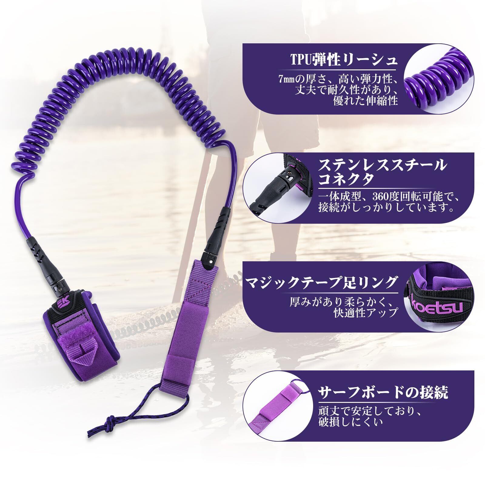 【高弾性・丈夫で耐久性】高品質な7mm TPU素材を使用し、最大で3倍に伸縮することができ、90cmから300cmに延長することができます。サーフボード上で自由に動くことができ、どんな距離の制約も受けません。また、素材は非常に弾力があり、引っ張られる感じがせず、長時間使用しても疲れを感じません。