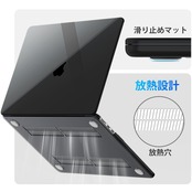 【絶妙なバランス・優れた放熱性】保護性能はそのままに、薄さと重さのバランスが絶妙で、厚さ1.77mm、重さ0.2kgと薄くて軽い。ボトムケースの上部と下部には冷却穴があり、Macbookの放熱を促進します。底部の四隅は高いフットパッドで設計されており、本体をクッションにし、空気循環を最大化し、熱を放散し、滑りを防ぎます。