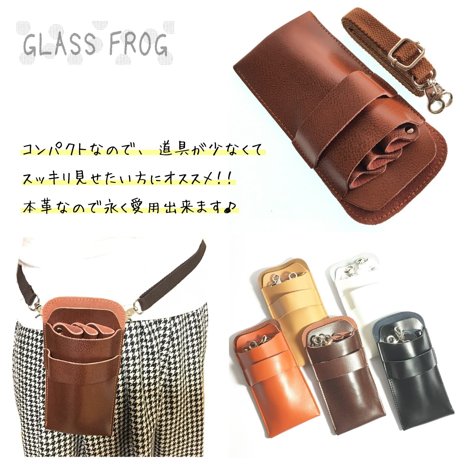 【GLASS FROG】シザーケース ハサミ3丁 本革 美容師 トリマー コンパクト (ホワイト)